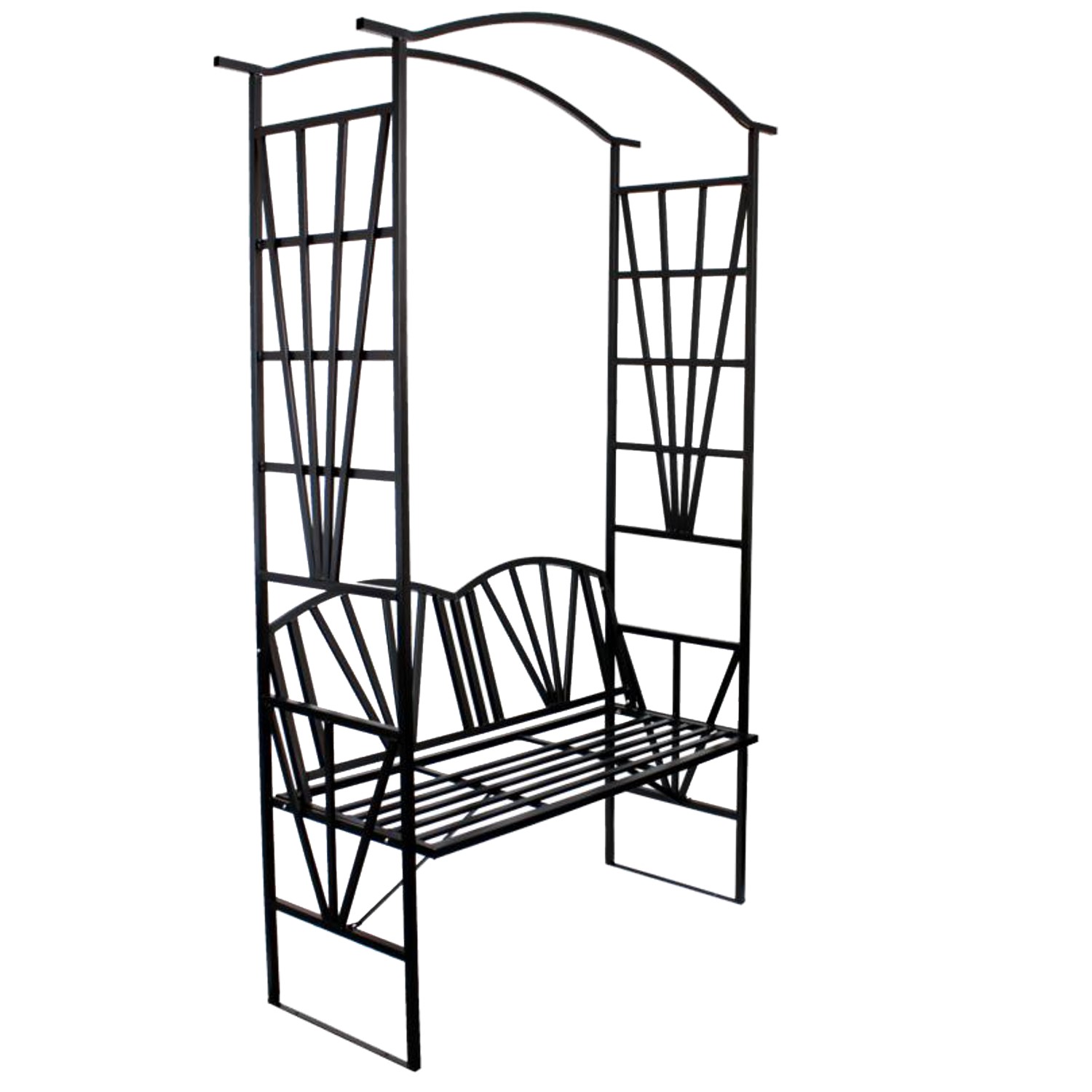 Садовая пергола для вьющихся растений со скамейкой – это элемент, который за несколько мгновений может преобразить ваш сад. Очень прочная конструкция с удобной скамейкой прослужит вам много сезонов. Это отличный элемент для посадки вьющихся растений, которые, поднимаясь по прочной конструкции, смогут в полной мере проявить свое очарование. Это идеальное место для отдыха среди зелени. • Размеры: 114 x 45 x 208 см (ш. x г. x в.)• Материал: металл• Цвет: черный • Сталь с порошковым покрытием
