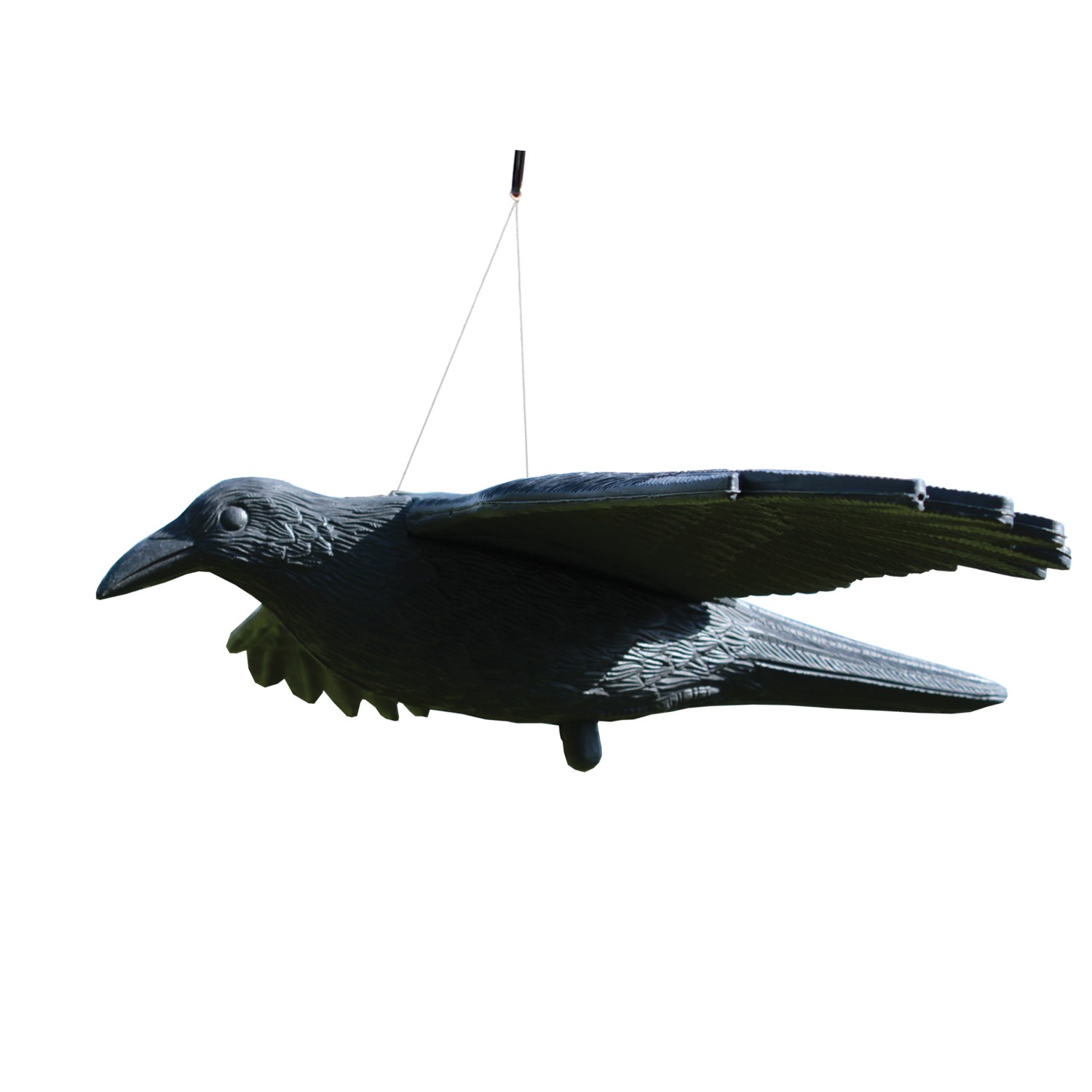 Летучий ворон призван визуально предупредить приближающихся птиц об опасности со стороны хищника, что в результате увеличивает вероятность перемещения голубей или других птиц в другое место. Модель ворона особенно рекомендуется в качестве средства от голубей на балконах, террасах, подоконниках и т. д., но также может быть использована в качестве отпугивателя других надоедливых видов птиц не только из застроенных территорий, но и из садов, огородов или полей. Предлагаемая модель хищной птицы имитирует настоящего ворона в полете. Она изготовлена из устойчивого к погодным условиям пластика.