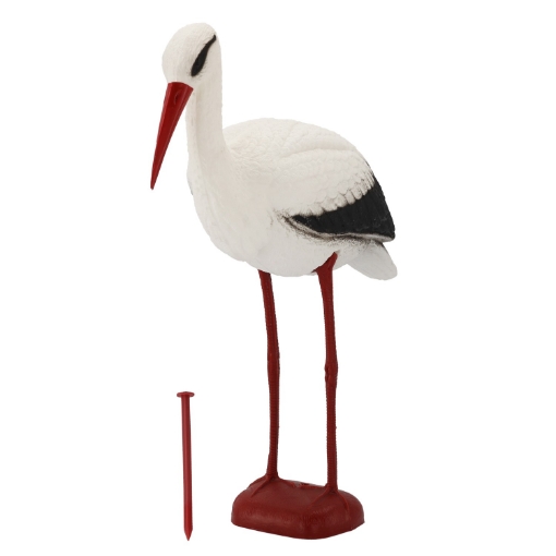 Эстетичный и очень реалистичный большой садовый аист станет прекрасным украшением любого сада, пруда или водоема. Аист изготовлен из прочного пластика, благодаря чему он устойчив к неблагоприятным погодным условиям и ультрафиолетовому излучению. Садовая декорация имеет прочную основу с отверстием, а специальный штырь, вбитый в грунт, удерживает аиста в устойчивом положении.