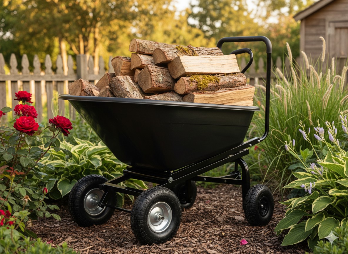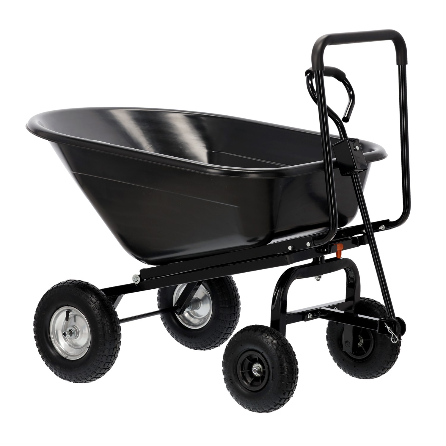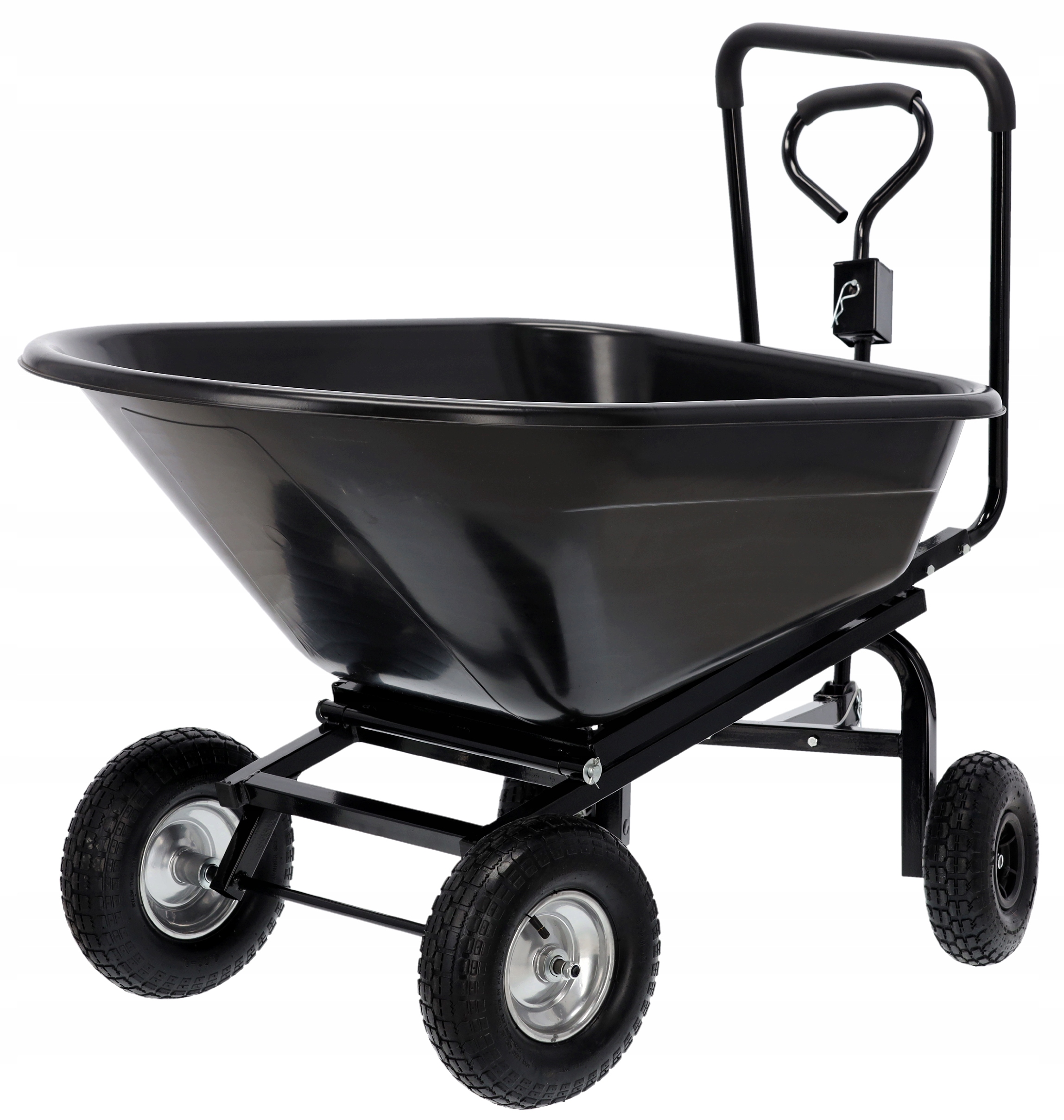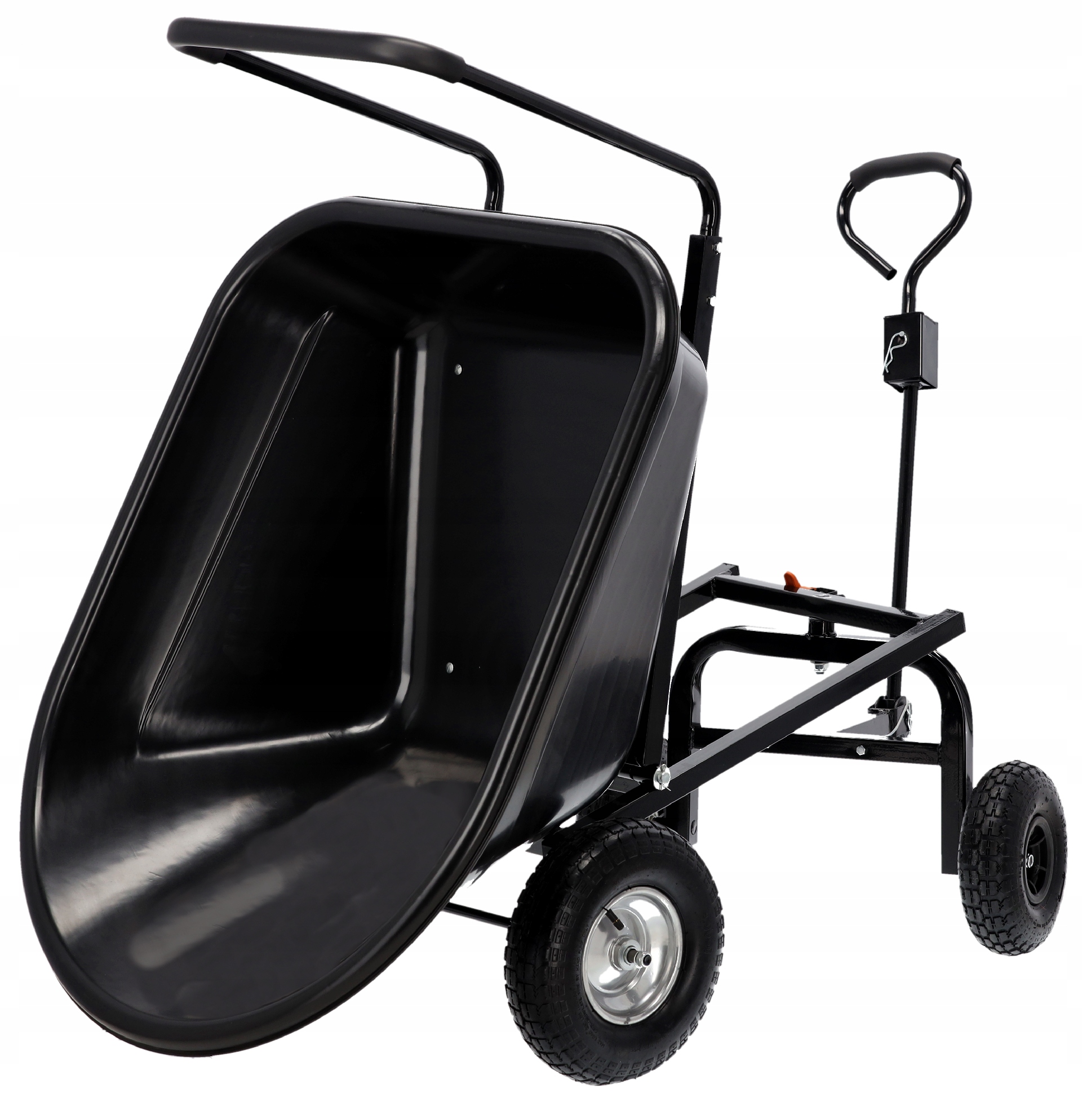 Конструкция тележки изготовлена из высококачественных компонентов, благодаря чему тележка является прочной, поворотная ось позволяет поворачивать ее практически на 180 градусов, поэтому работа с ее использованием является простой и приятной. Надувные колеса с протектором обеспечивают отличное сцепление с поверхностью. Нескользящая ручка дополнительно облегчает работу.