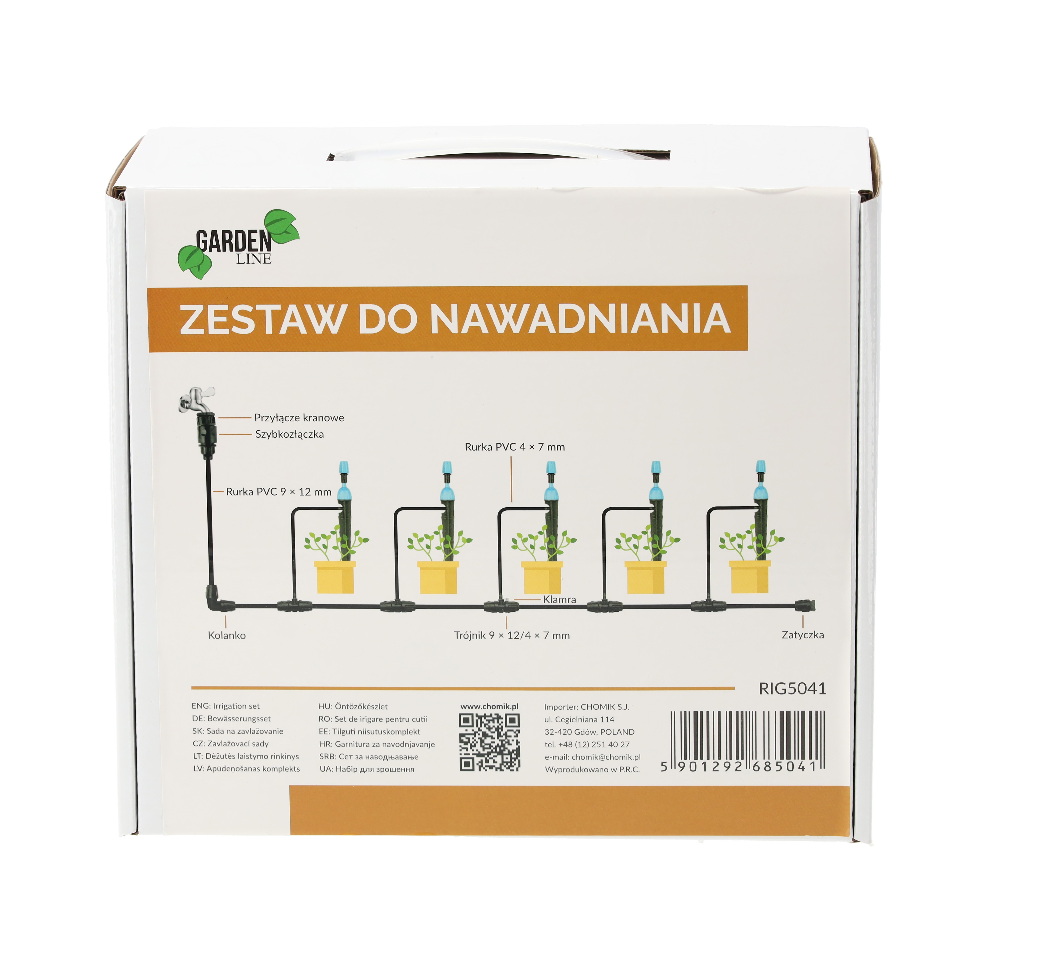 Состав набора:- крановое соединение- черная ПВХ-труба длиной 10 м 9x12 мм- 2 тройника 9x12 мм- 2x колено 9x12 мм- 3 наконечника- 20 зажимов- быстроразъемное соединение- черная ПВХ-труба длиной 10 м 4x7 мм- 10 тройников 9x12 мм с переходником на 4x7 мм- 2 прямых соединителя 9x12 мм- 10 дождевателей- тефлоновая лентаПРОСМОТРИТЕ ВИДЕО О ПРОДУКТЕ:
