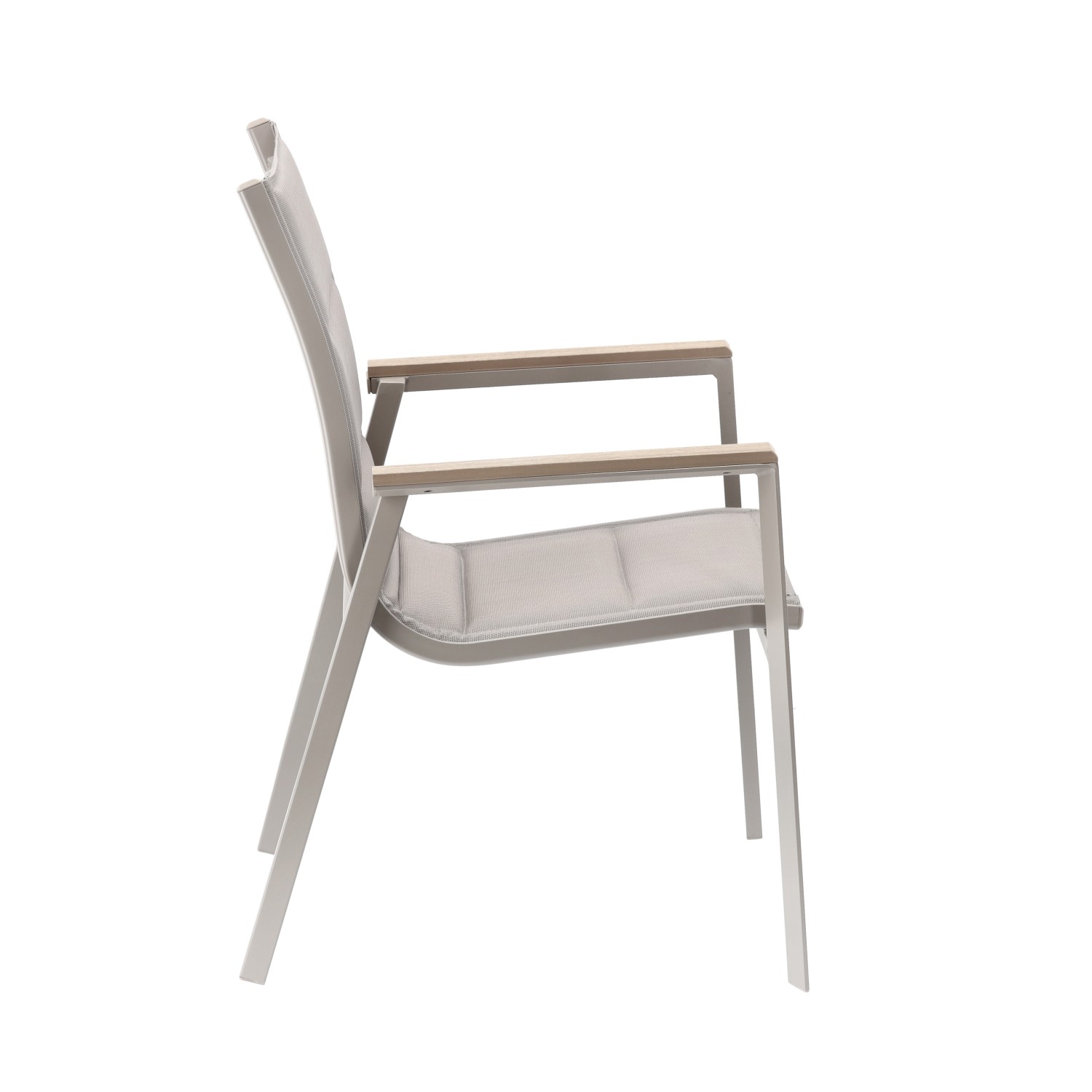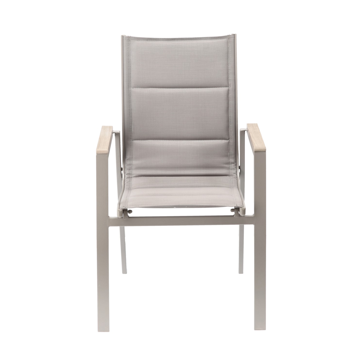 Современное и удобное садовое кресло, изготовленное из легкой, но прочной алюминиевой рамы, отделанной сеткой Textilene 2x1 с мягкой обивкой. Идеально подходит для террасы, сада или балкона. Подлокотники из поливуда придают естественный вид и обеспечивают устойчивость к погодным условиям.