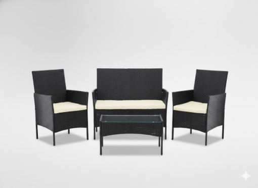Элегантный и классический комплект мебели, который идеально подойдет для балкона, террасы или зоны отдыха в саду. Универсальный цвет и интересная форма позволяют ему гармонично вписываться в любое окружение. Прочная конструкция и высококачественные материалы обеспечивают долговечность и удобство использования.