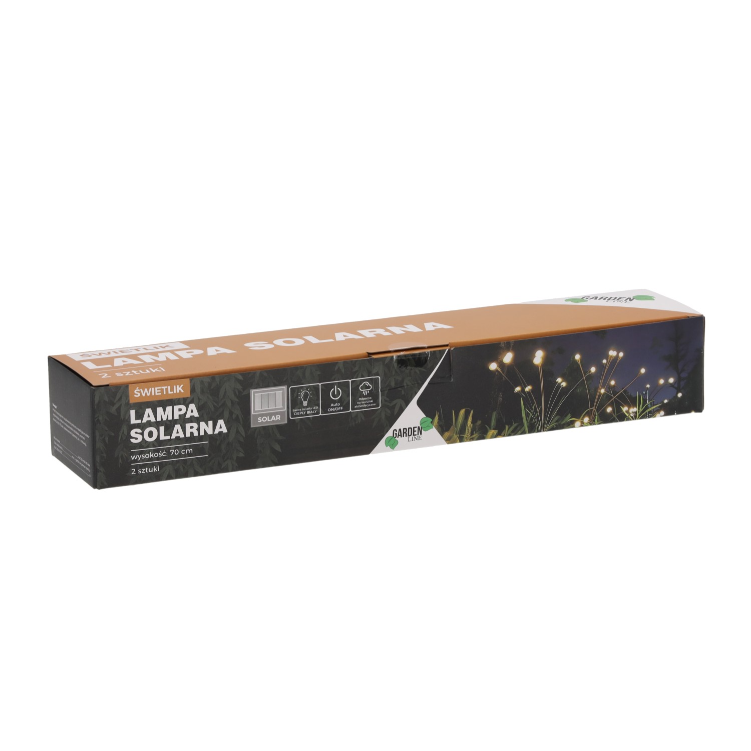 Набор из 2 солнечных ламп-светильниковВысота: около 70 см6 теплых белых шаров на каждую лампу1 аккумулятор AA 300 мАч NI-MH (перезаряжаемый)Поликристаллический солнечный панель, IP44Время зарядки: 7-8 часовВремя работы: 6-7 часов