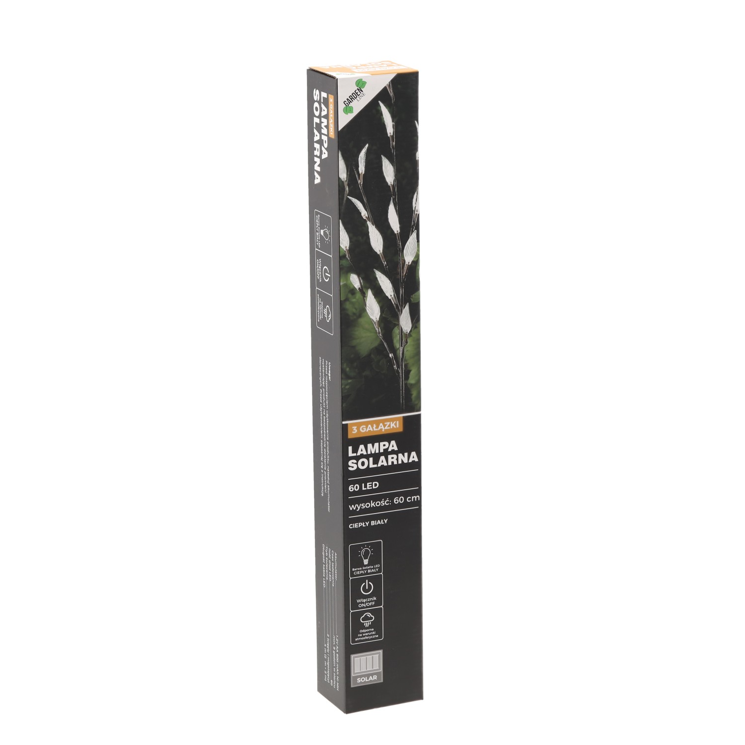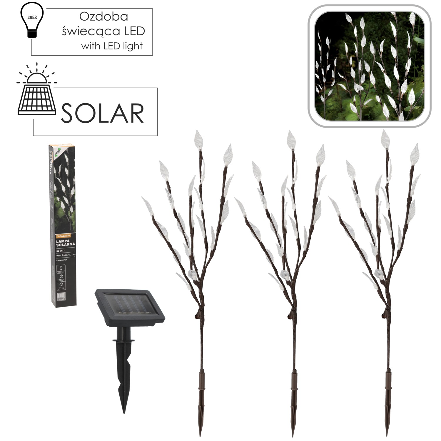 Солнечная лампа H 60 см с 3 ветками и 60 светодиодами, теплый белый свет