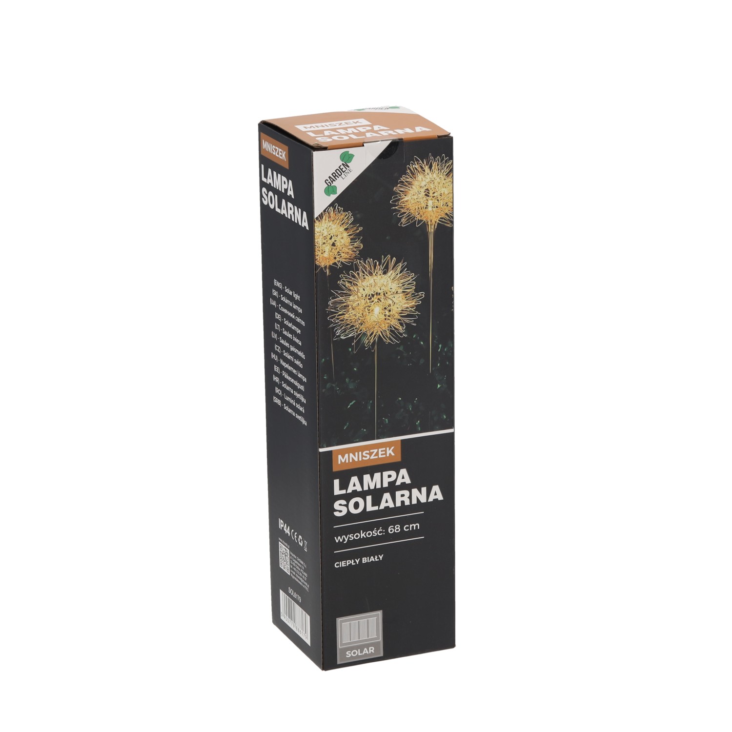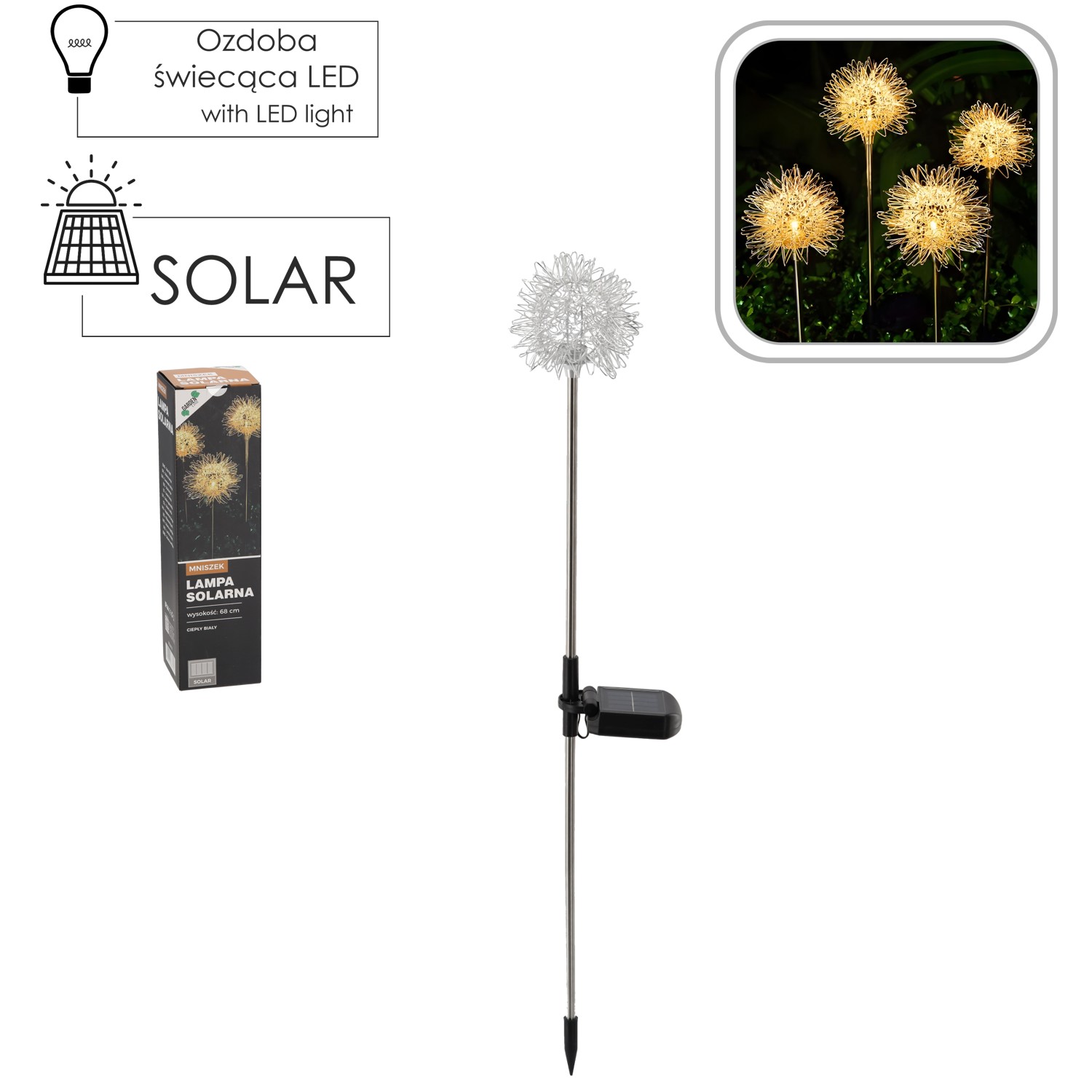 Новые солнечные лампы в форме одуванчикаРазмер: 10 x 10 x 68 см1 белый теплый светодиодС 1 аккумулятором NI-MH 1,2 В 200 мАч (перезаряжаемый)Материал: пластик, алюминий, нержавеющая сталь; поликристаллический солнечный панель, IP44Время зарядки: 7-8 часовВремя работы: 6-7 часов