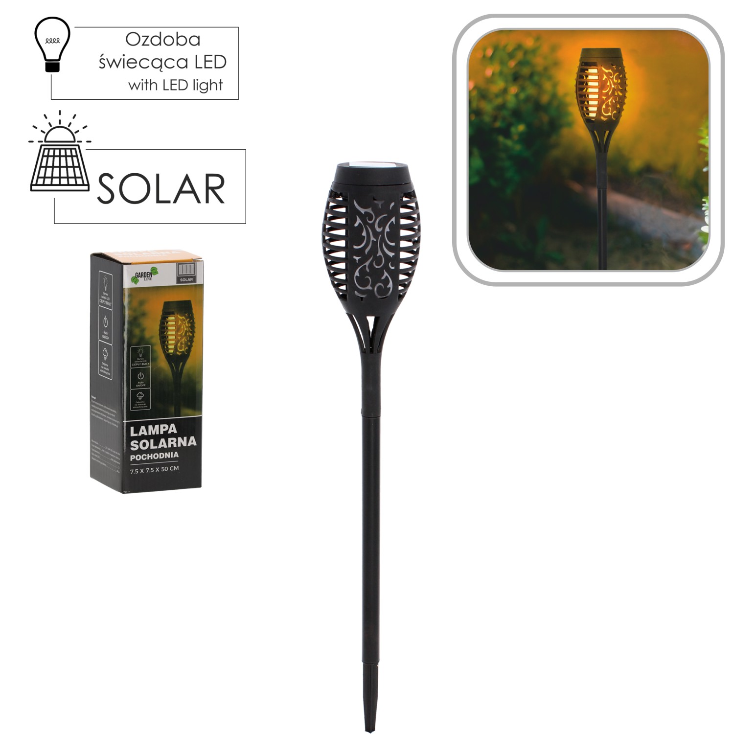 Солнечная лампа LED. Идеально подходит для сада. Ее можно установить в любом месте, где есть достаточное количество солнечного света. Солнечные лампы наиболее эффектно смотрятся, установленные вдоль дорожек, аллей, подъездных путей, на террасах или верандах. Они подчеркивают и дополняют архитектуру сада, в том числе пруды или растительные композиции. Лампы питаются от солнечной энергии, поэтому не требуют дополнительных финансовых затрат.• Линия продукта: Garden Line• Размеры продукта: 75 x 75 x 500 мм• Солнечная батарея: аморфный кремний 33x33 мм• Емкость батареи: 100 мАч • Среднее напряжение: 1 x 1,2 В• Батарея AA• Тип лампочки: 12 x белый светодиод• Основной материал изделия: пластик • Основной цвет продукта: черный• Степень защиты продукта: IP44• Устойчивость к атмосферным воздействиям.• Крепится к земле с помощью специального пластикового штифта