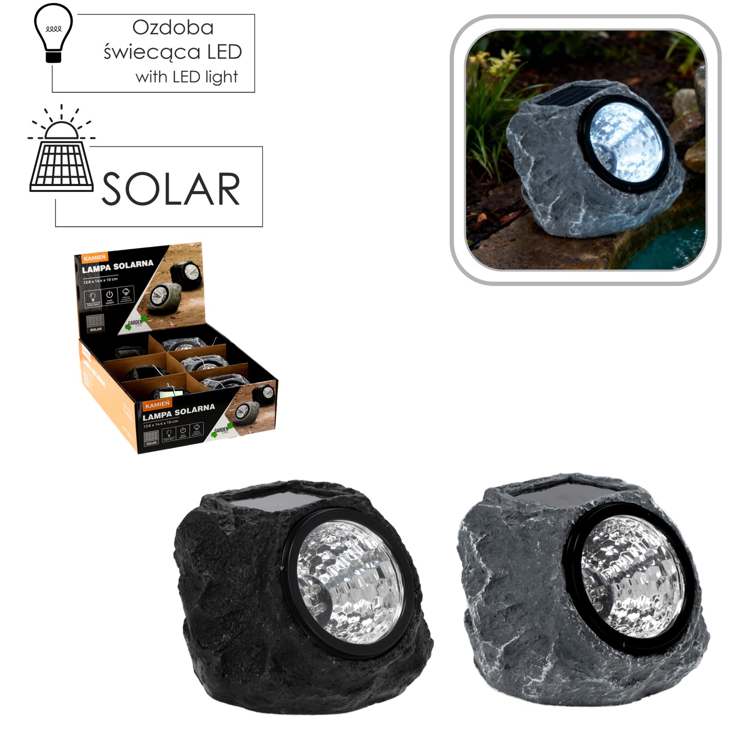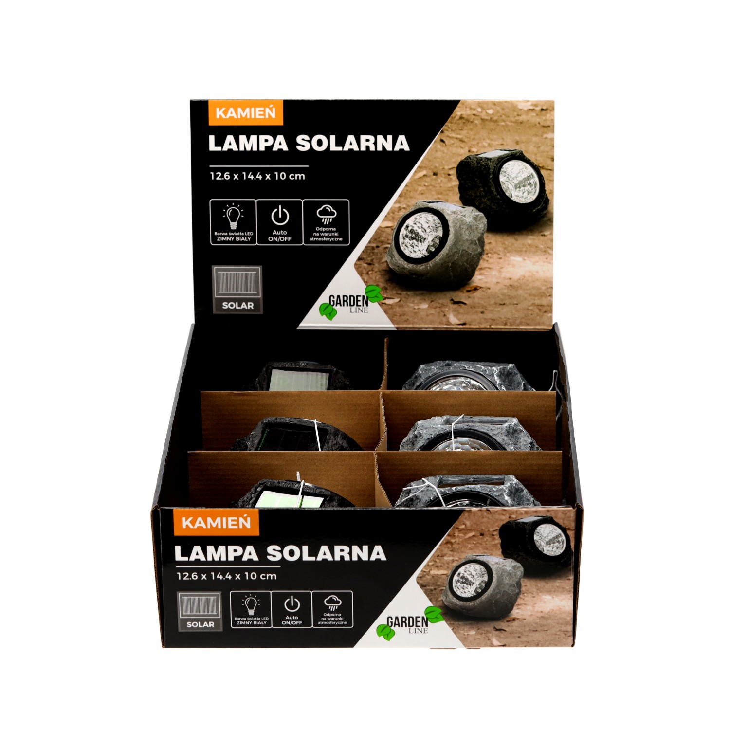 Солнечная светодиодная лампа. Идеально подходит для сада. Ее можно установить в любом месте, где есть достаточное количество солнечного света. Солнечные лампы наиболее эффектно смотрятся, установленные вдоль дорожек, аллей, подъездных путей, на террасах или верандах. Они подчеркивают и дополняют архитектуру сада, в том числе пруды или растительные композиции. Лампы питаются от солнечной энергии, поэтому не требуют дополнительных финансовых затрат.• Линия продукта: Garden Line• Размеры продукта: 126 x 144 x 100 мм• Солнечная батарея: аморфная 46 x 56 мм• Емкость батареи: 100 мАч • Среднее напряжение: 1 x 1,2 В • Батарея AA• никель-металлогидридный аккумулятор• Кнопка зарядки• Тип лампочки: 4 x белый светодиод• Основной материал изделия: пластик• Основной цвет изделия: черный/серый • Степень защиты продукта: IP44• Устойчивость к погодным условиям.• Упаковка: 3 штуки черного цвета и 3 штуки серого цвета
