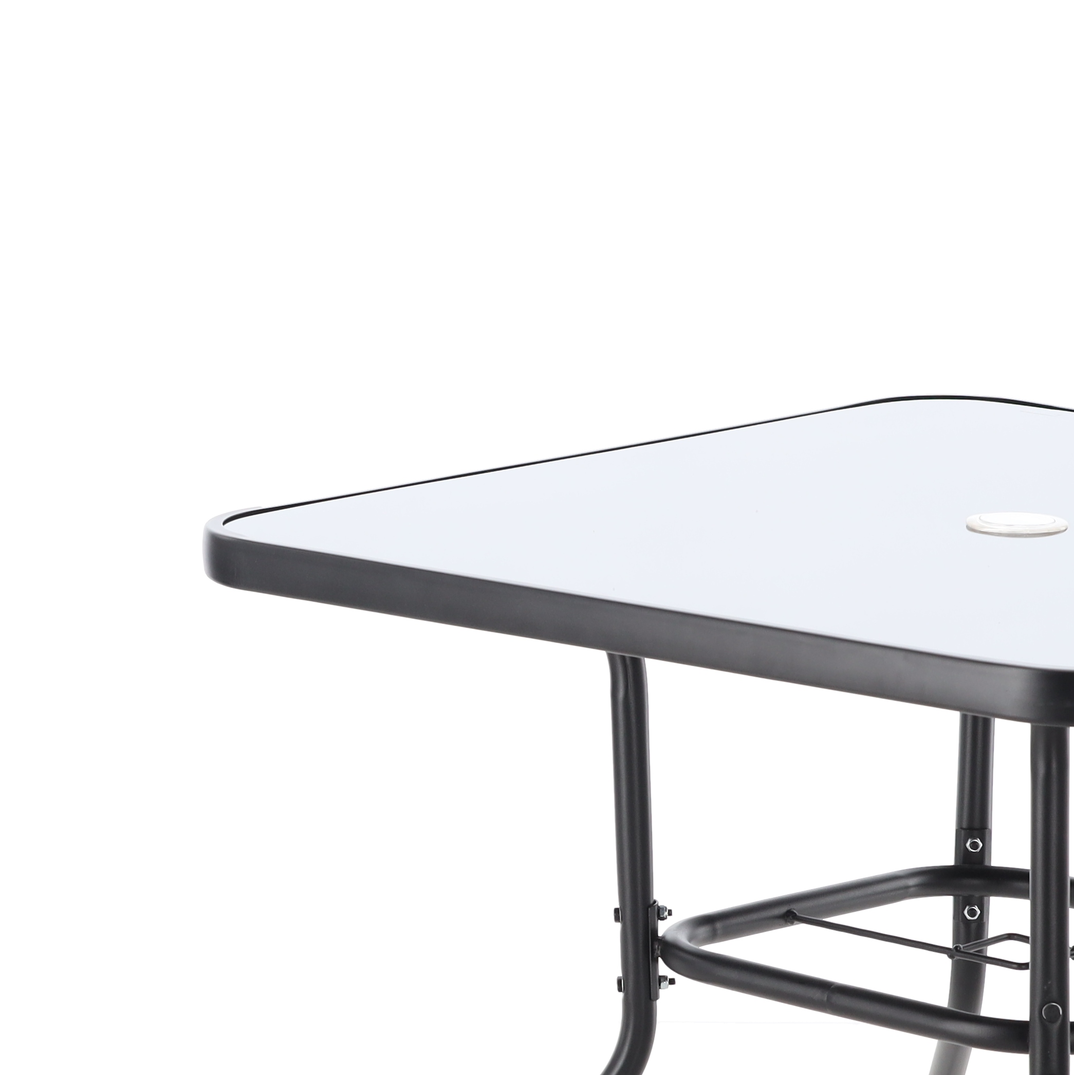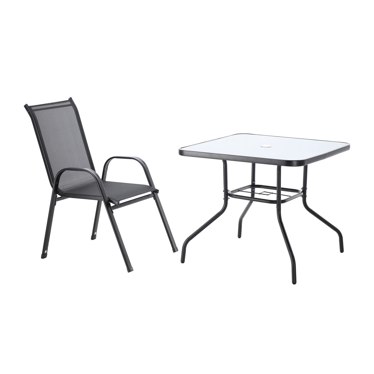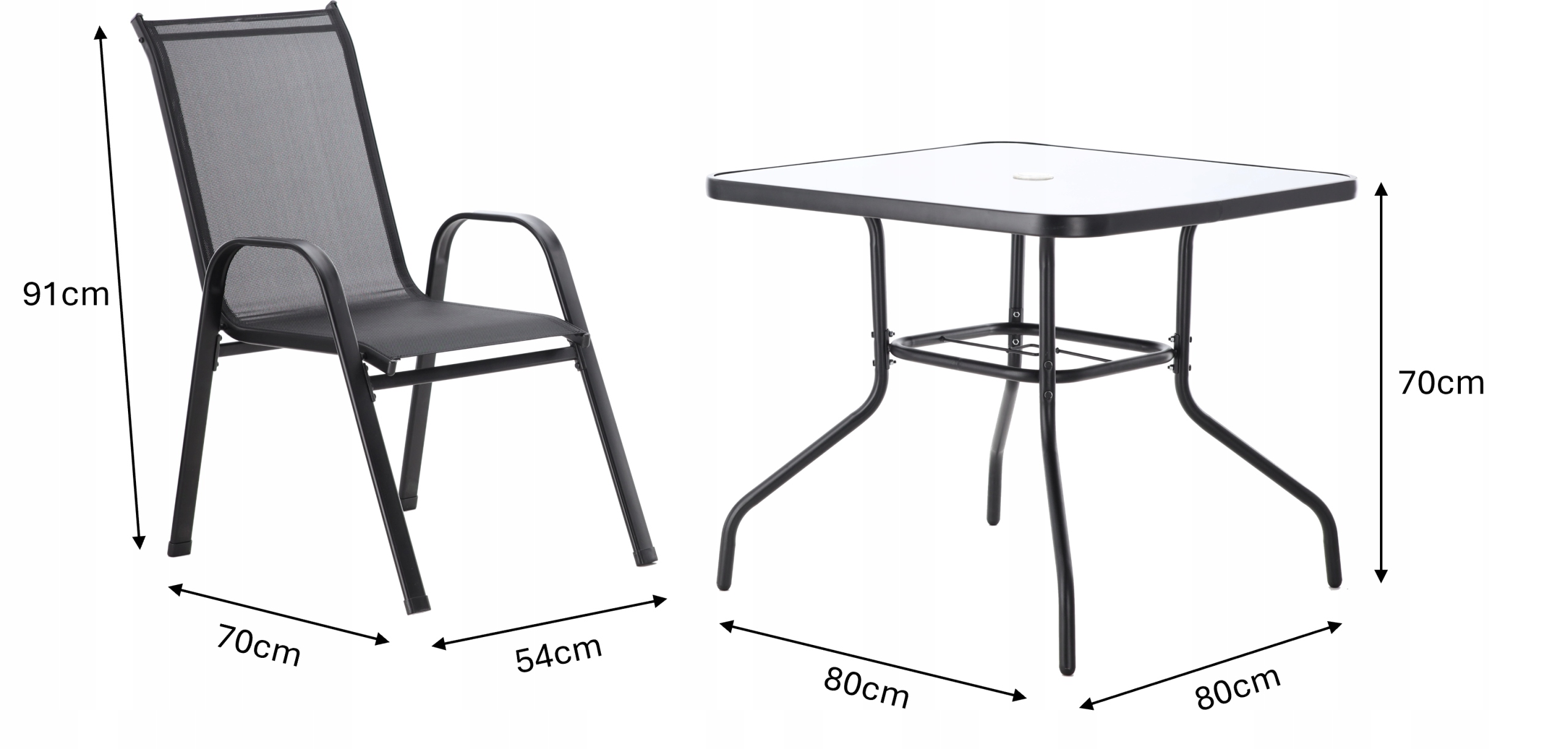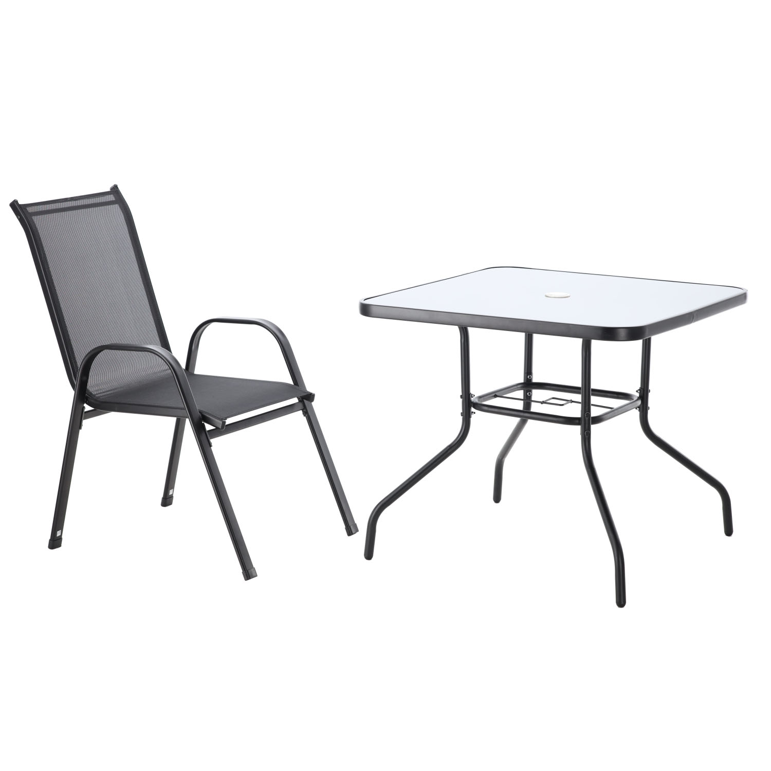 Современный комплект садовой мебели черного цвета, состоящий из четырех удобных стульев и квадратного столика со стеклянной столешницей. Прочная конструкция из окрашенной порошковой краской стали и устойчивые к атмосферным воздействиям материалы делают этот комплект идеальным для сада, террасы или балкона. Комфорт использования и элегантный внешний вид гарантируют долгое удовольствие от использования.