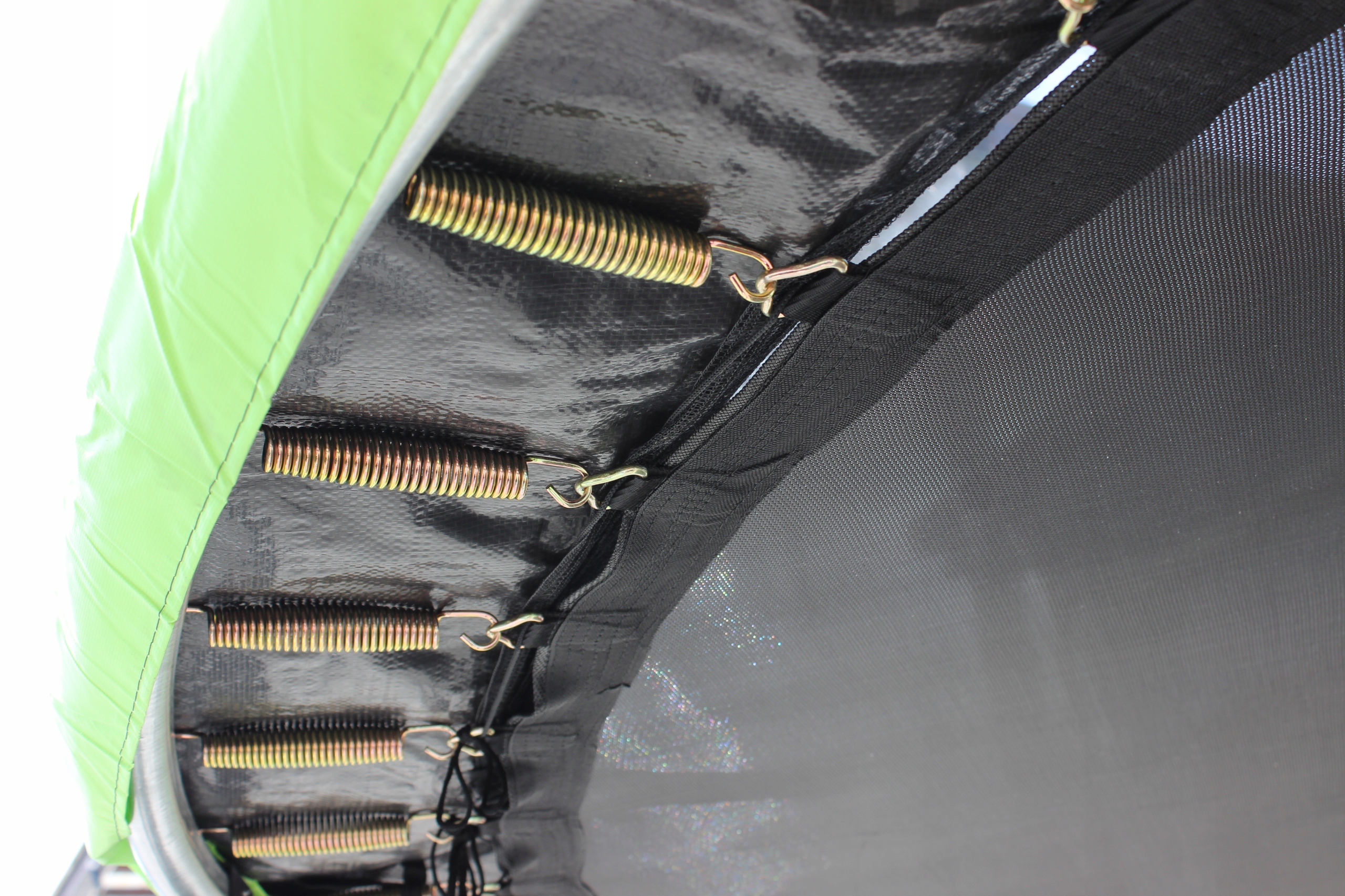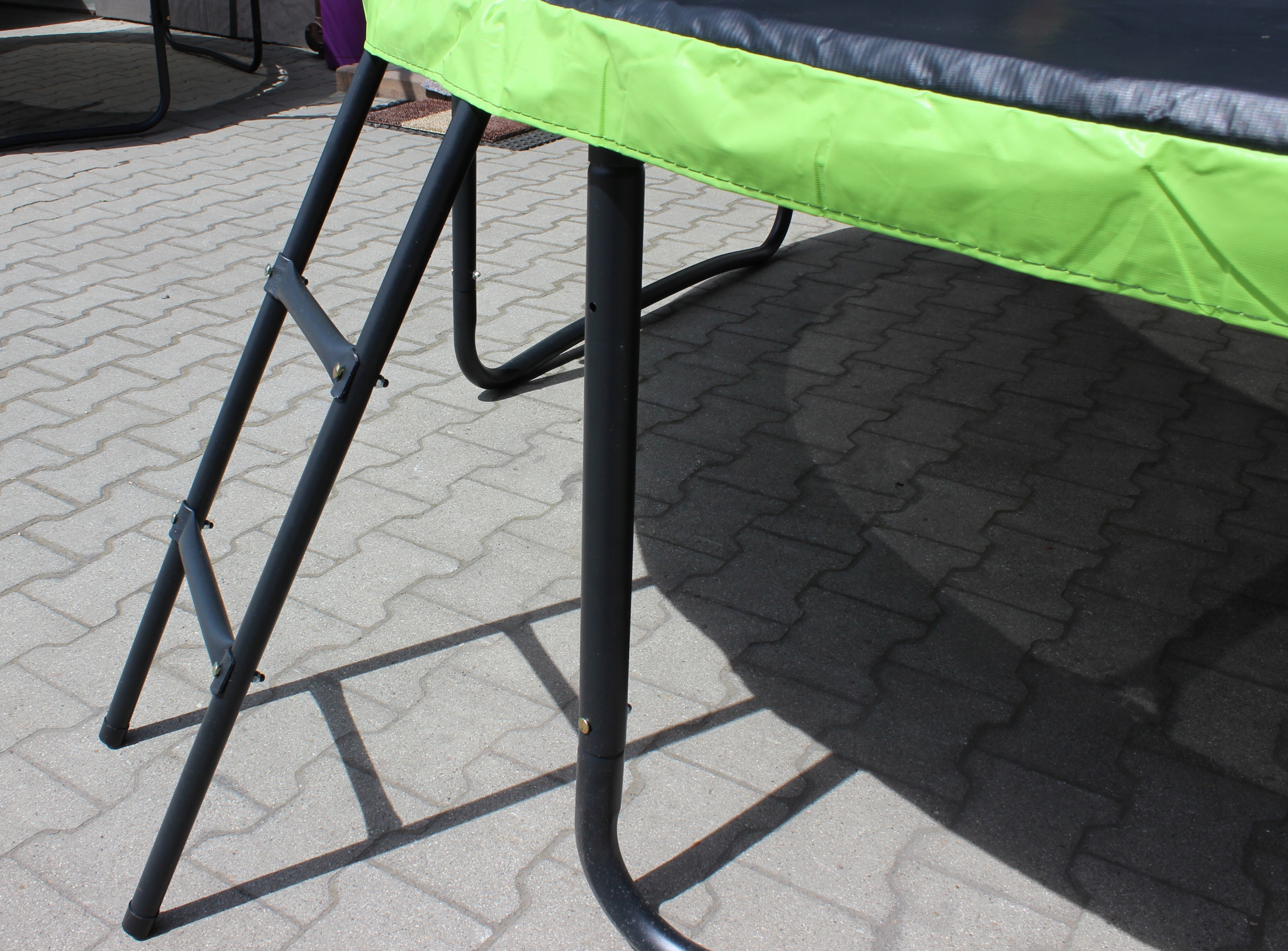Батут является идеальным решением для игр детей, а также в качестве спортивного снаряжения для взрослых. Мат натянут с помощью 48 пружин, которые были соответствующим образом закалены и гальванизированы, защищены фланцем, заполненным пенопластом. Батут имеет 4 ножки, усиливающие стабильность (оцинкованные, двойные широкие ножки в системе «U»). В комплект также входит лестница и защитная сетка, устойчивая к погодным условиям, деформации и истиранию (150 см).
