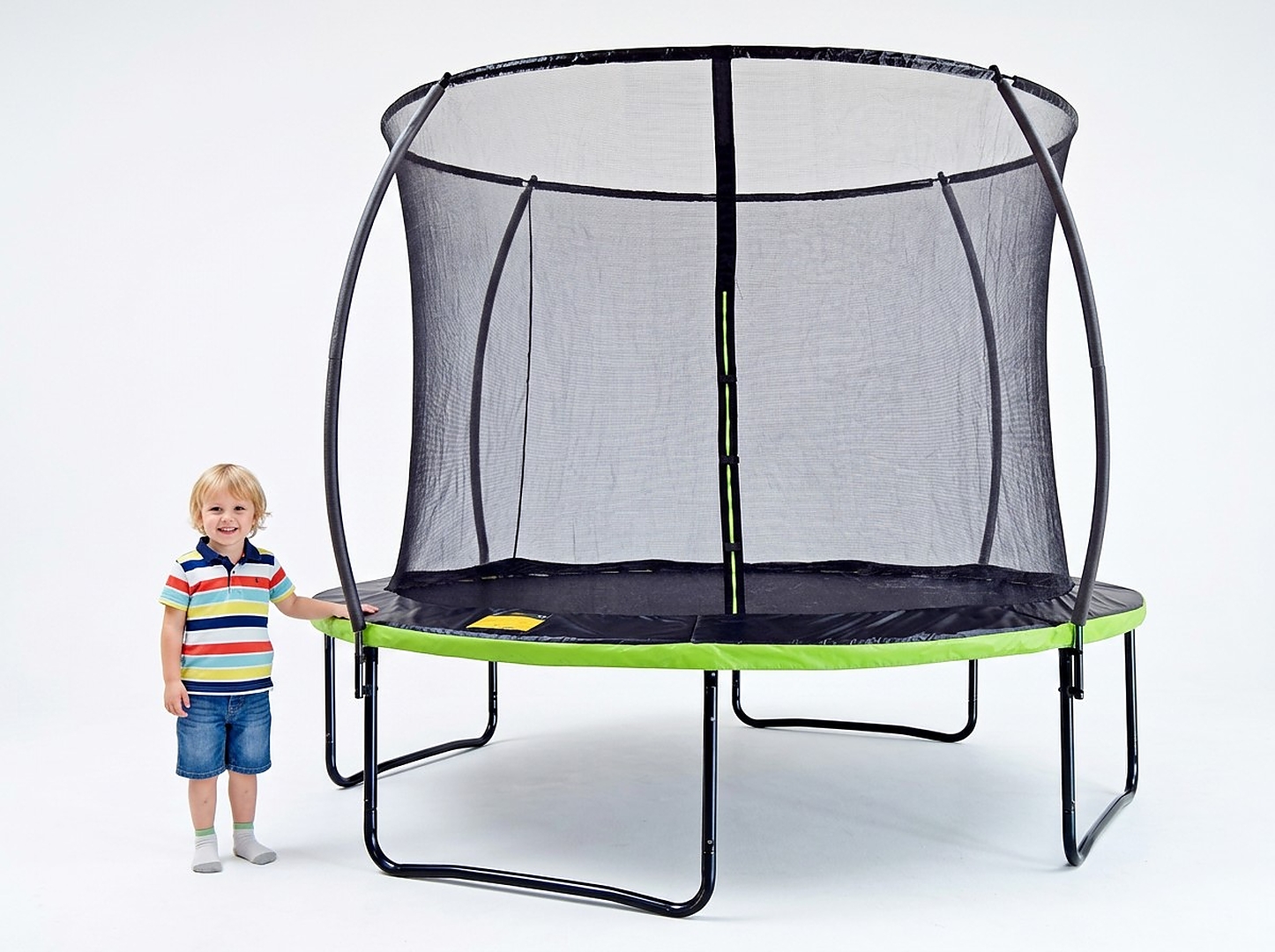 Батут — идеальное решение для игр детей, а также в качестве спортивного снаряжения для взрослых. Матрас натянут с помощью 48 пружин, которые были соответствующим образом закалены и оцинкованы, а также защищены ободом, заполненным пенопластом. Батут имеет 4 ножки, обеспечивающие устойчивость (оцинкованные, двойные широкие ножки в системе «U»). В комплект также входит лестница и защитная сетка, устойчивая к погодным условиям, деформации и истиранию (150 см).
