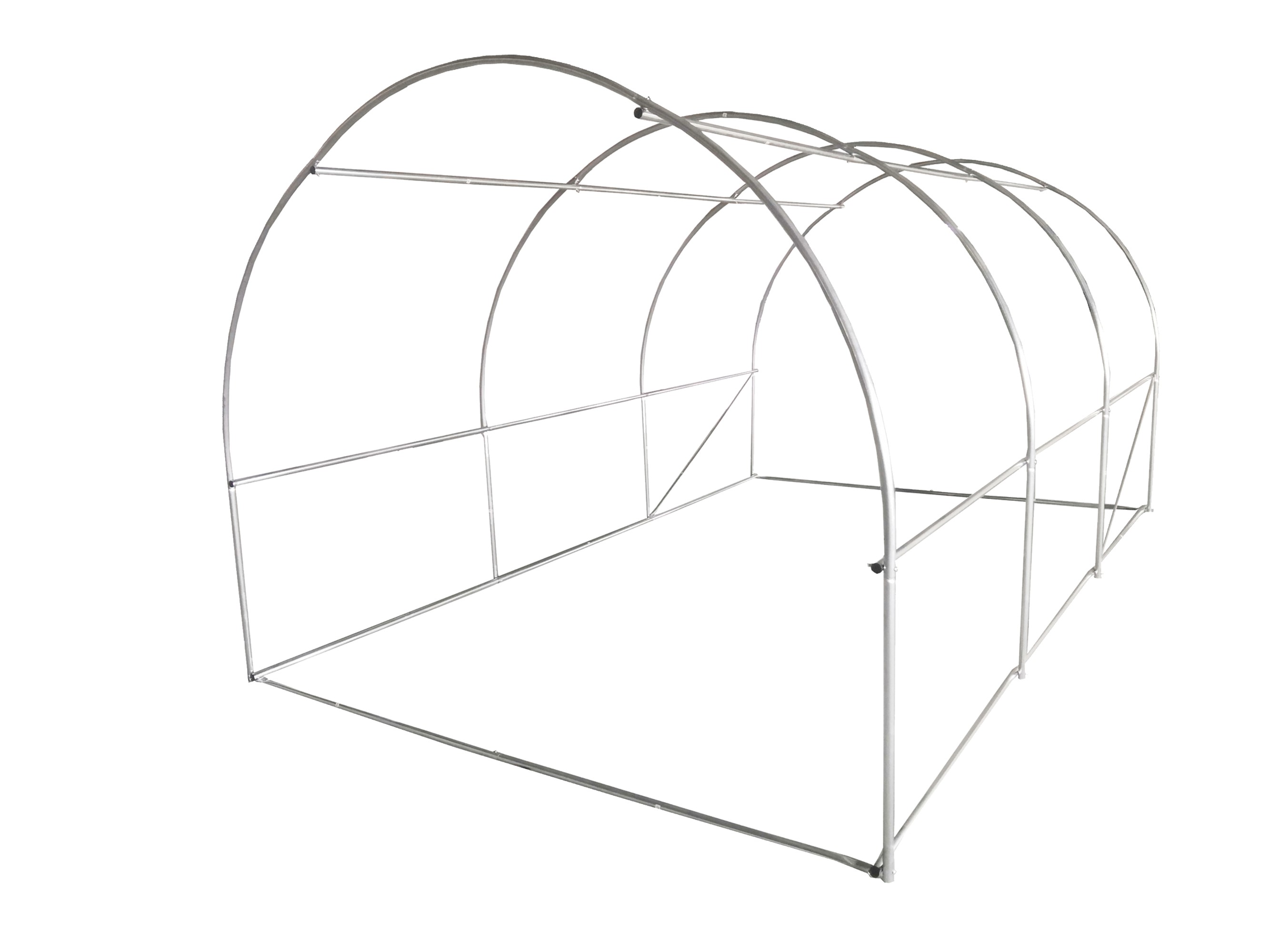 Шаг 6. Установите остальные поперечины и наклонные трубки. Когда все элементы будут собраны, можно полностью затянуть винты. Установите пленку и закрепите туннель в грунте.