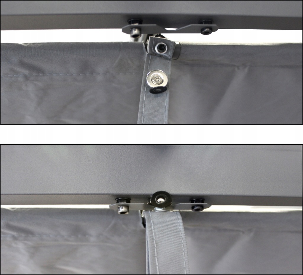 Каркас нашей перголы изготовлен из стальных профилей с порошковым покрытием, что гарантирует прочность и стабильность конструкции. Покрытие, в свою очередь, изготовлено из плотной полиэстеровой ткани плотностью 300 г/м2, которая обеспечивает не только защиту от солнца, но и от небольшого дождя благодаря своей водонепроницаемой конструкции.