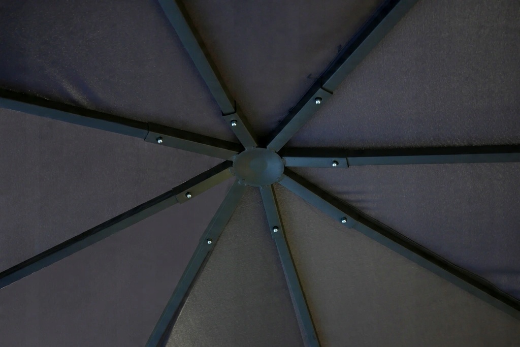 Стабильный павильон является отличным продуктом для тех, кто предпочитает проводить время в саду. Сборка занимает всего 30 минут. Каркас изготовлен из антикоррозийных материалов, а покрытие – из плотной ткани.