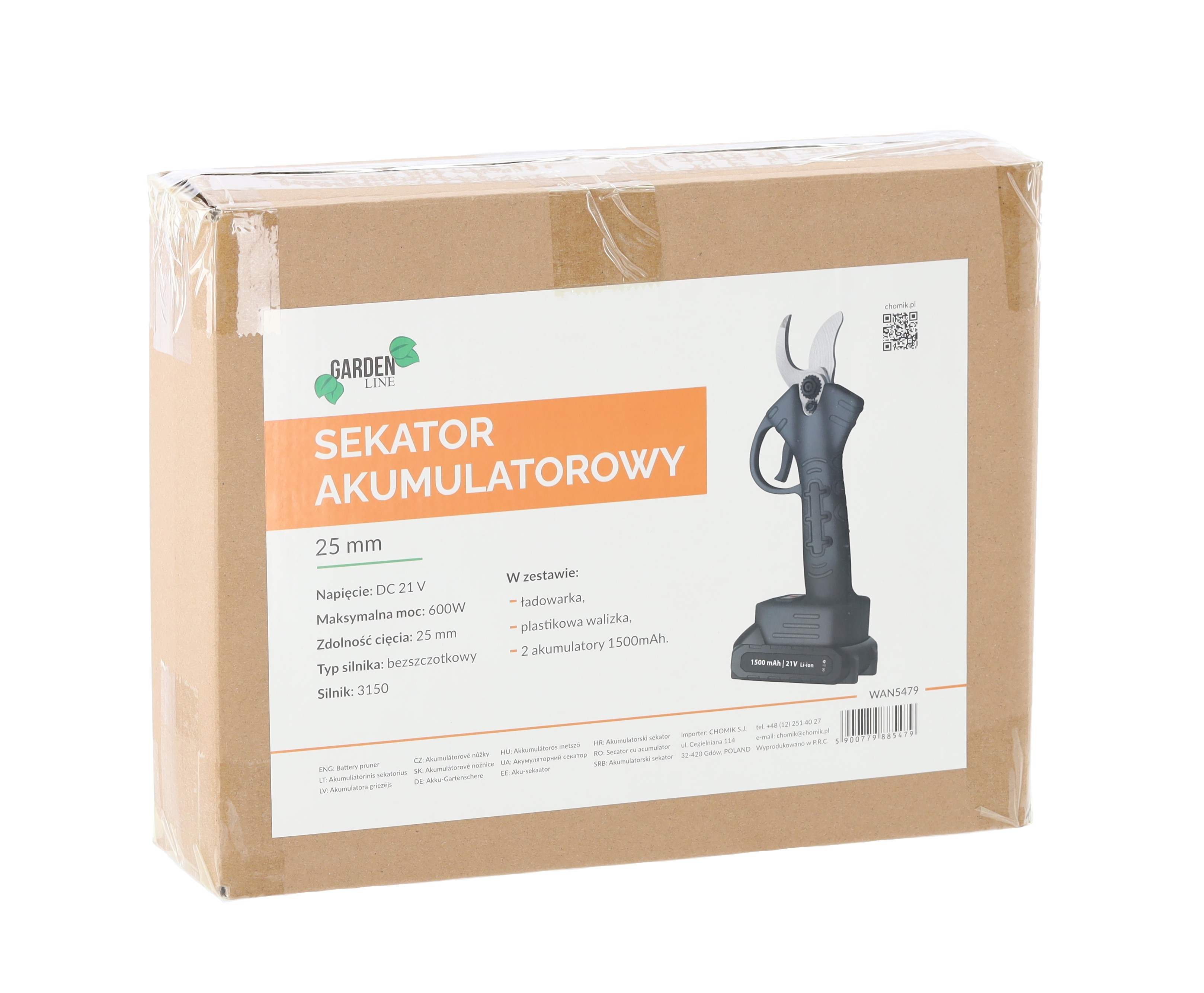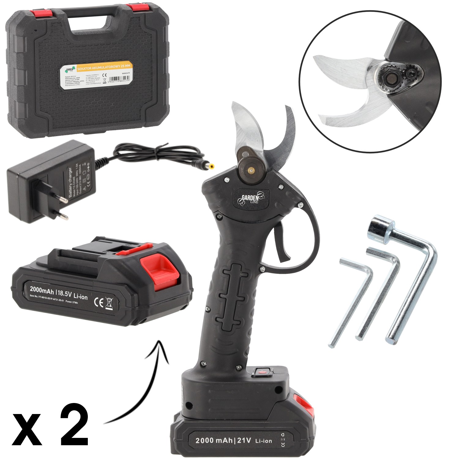 Ухаживайте за своим садом с легкостью и точностью. Аккумуляторный секатор 21V — это современный инструмент, который позволяет быстро и удобно обрезать ветки толщиной до 25 мм — без усилий и без проводов.