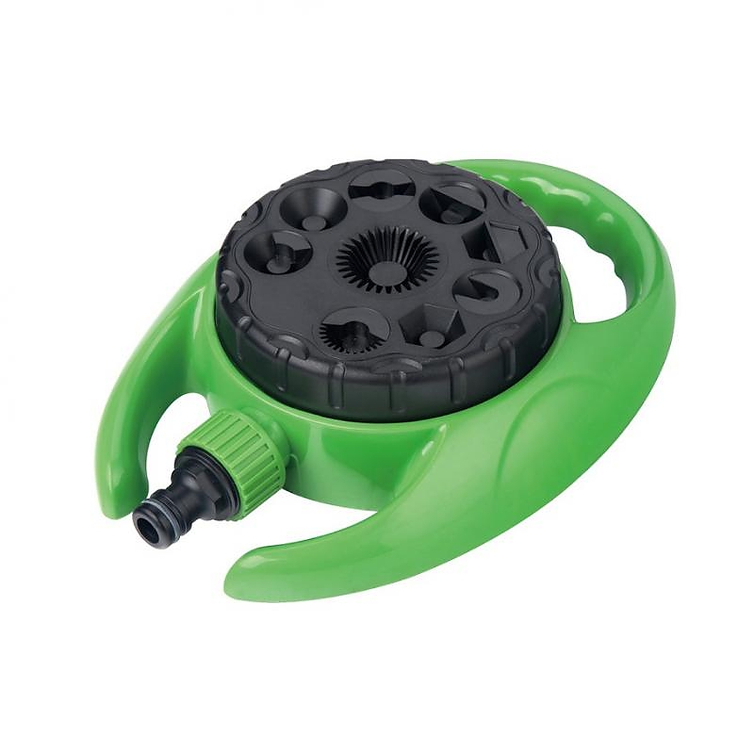 Статический дождеватель с 9 функциями представляет собой отличное решение для полива небольших садов. Современный и многофункциональный, при этом очень простой в использовании. После подключения к садовому шлангу достаточно выбрать функцию, повернув черный верхний регулятор, и все готово. Пластиковая, стабильная конструкция делает дождеватель идеальным для садов или участков, обеспечивая быстрое и удобное орошение. Позволяет избежать трудоемкого ручного полива.