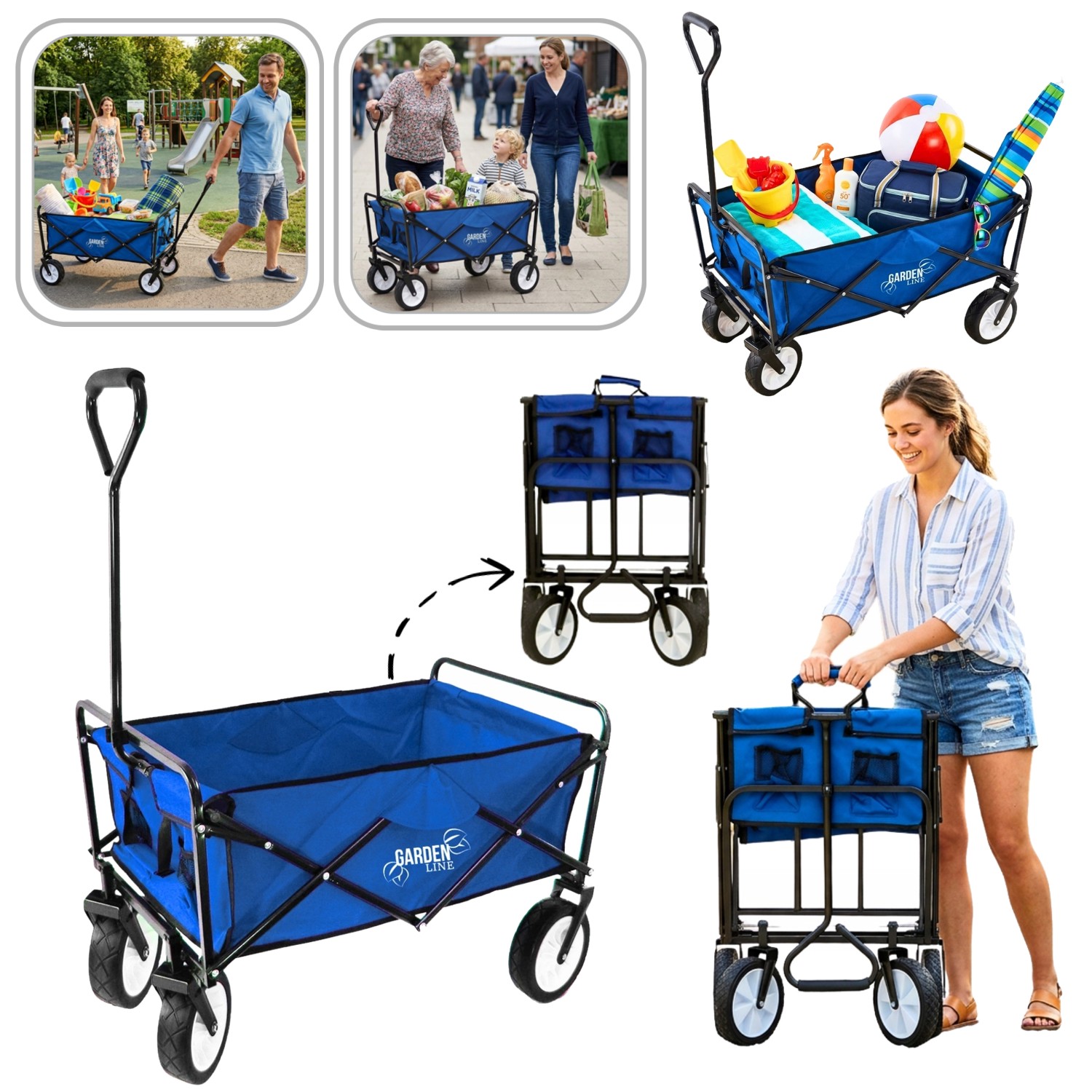 Представляем вам синюю складную садовую тележку — легкую, прочную и готовую к работе! Она отлично подойдет для перевозки инструментов, растений, покупок или даже багажа во время поездок. 🚀 Благодаря компактной конструкции и удобной ручке повседневные дела станут проще, чем когда-либо.