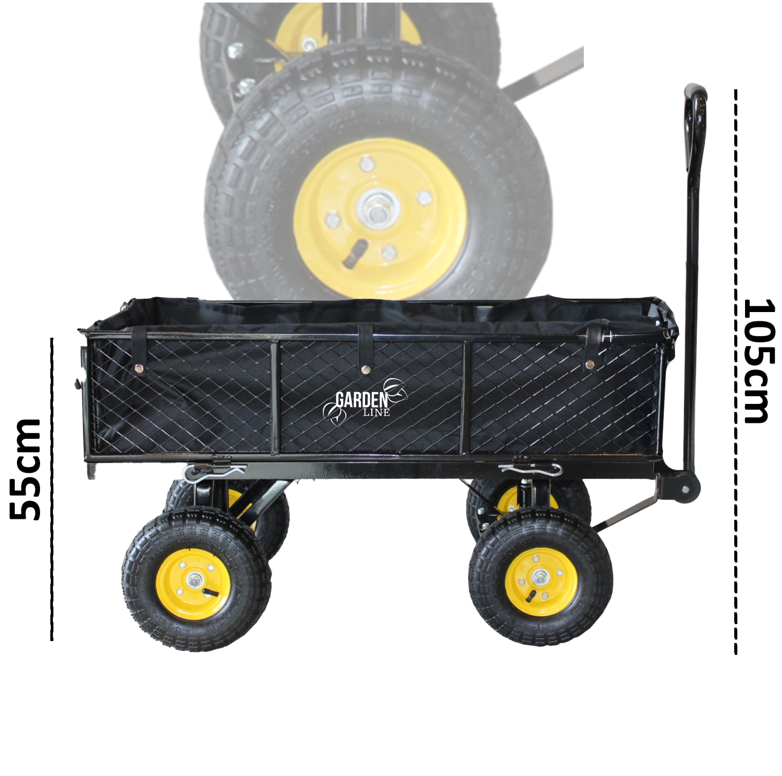 Работайте более эффективно и удобно с двухфункциональной садовой тележкой Garden Line в элегантном черном цвете. Это универсальное средство сочетает в себе функции традиционной тачки и транспортной платформы, идеально подходящей для перевозки тяжелых и крупногабаритных грузов.