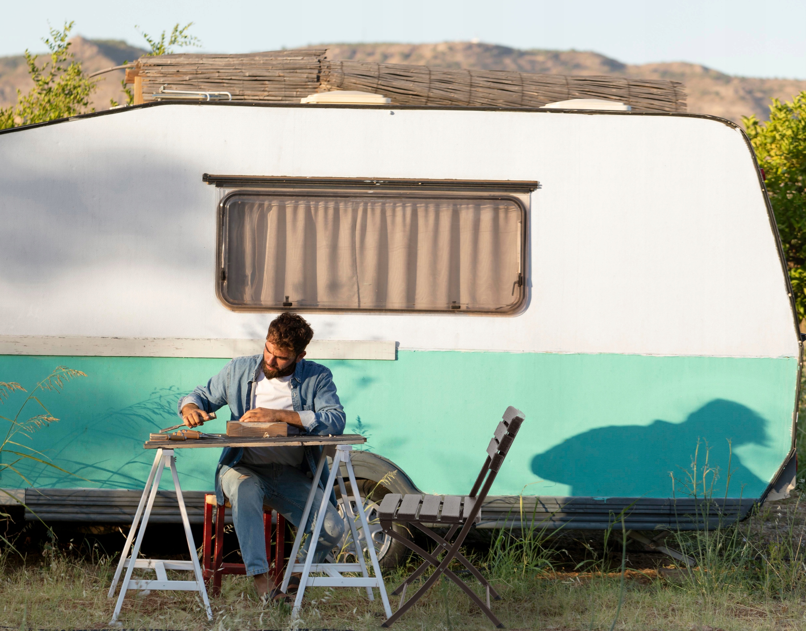 Стул идеально подходит для путешествий на кемпере благодаря функции складывания, благодаря которой стул занимает очень мало места.