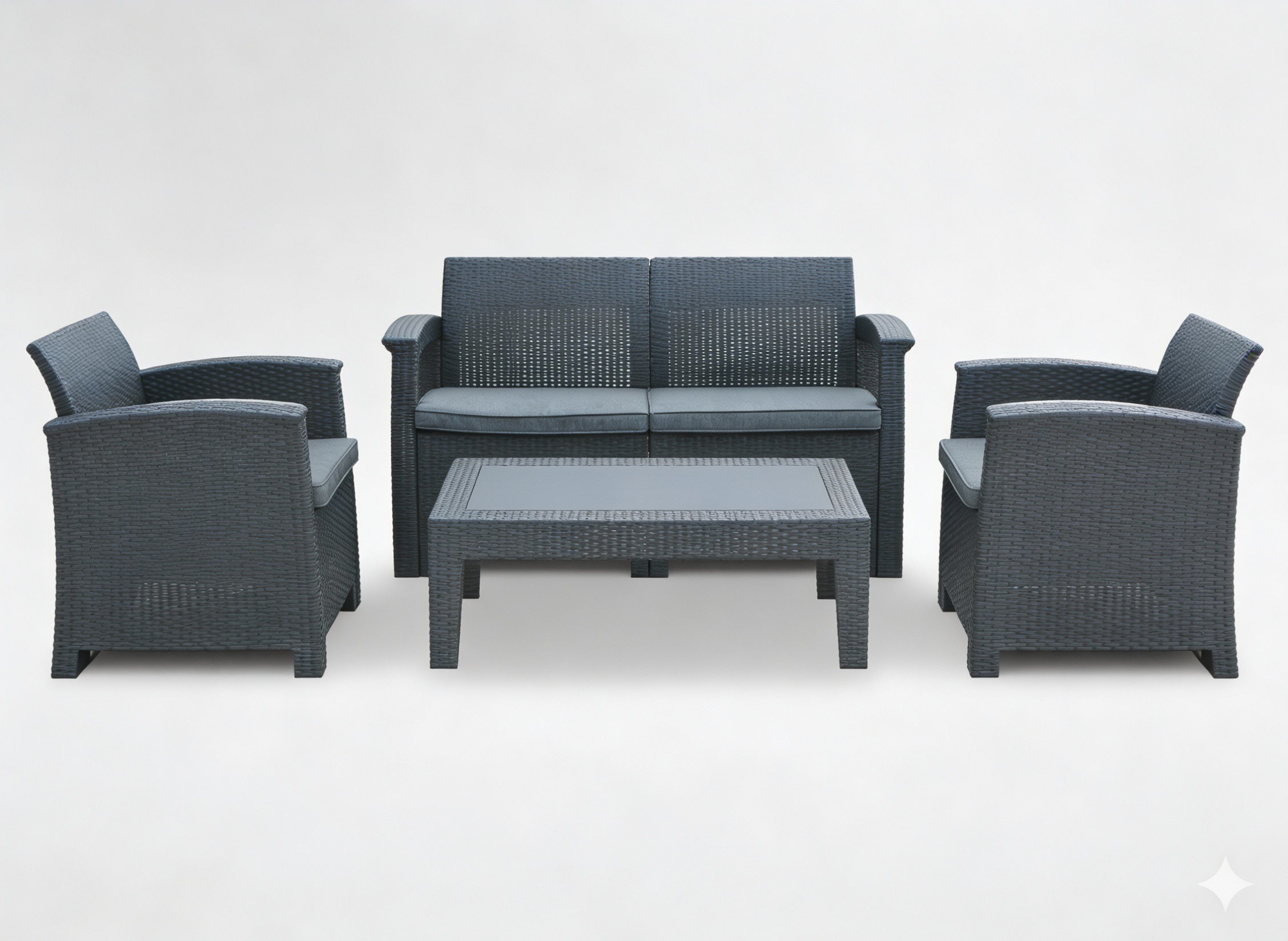 Этот комплект садовой мебели антрацитового цвета представляет собой идеальное сочетание эстетики, удобства и долговечности. Он обеспечит комфортный отдых и стильный облик вашего открытого пространства на протяжении многих сезонов 🌿✨