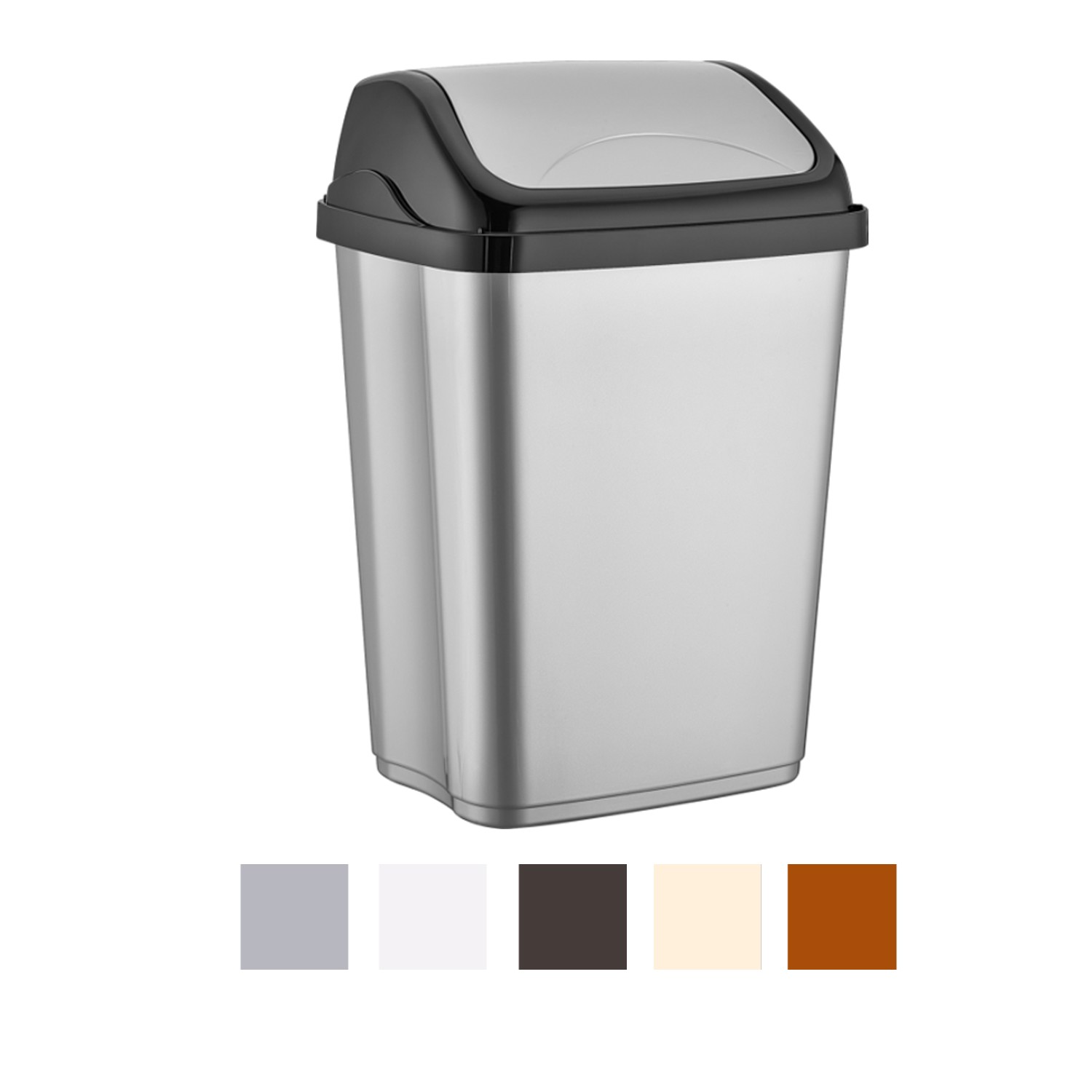 Мусорное ведро изготовлено из армированного пластика. Емкость контейнера составляет 16 литров, он предназначен для одноразовых полиэтиленовых пакетов. Крышка ведра закрывается, благодаря чему содержимое контейнера становится невидимым. Это предотвращает распространение неприятного запаха. Корзина доступна в нескольких цветовых вариантах.