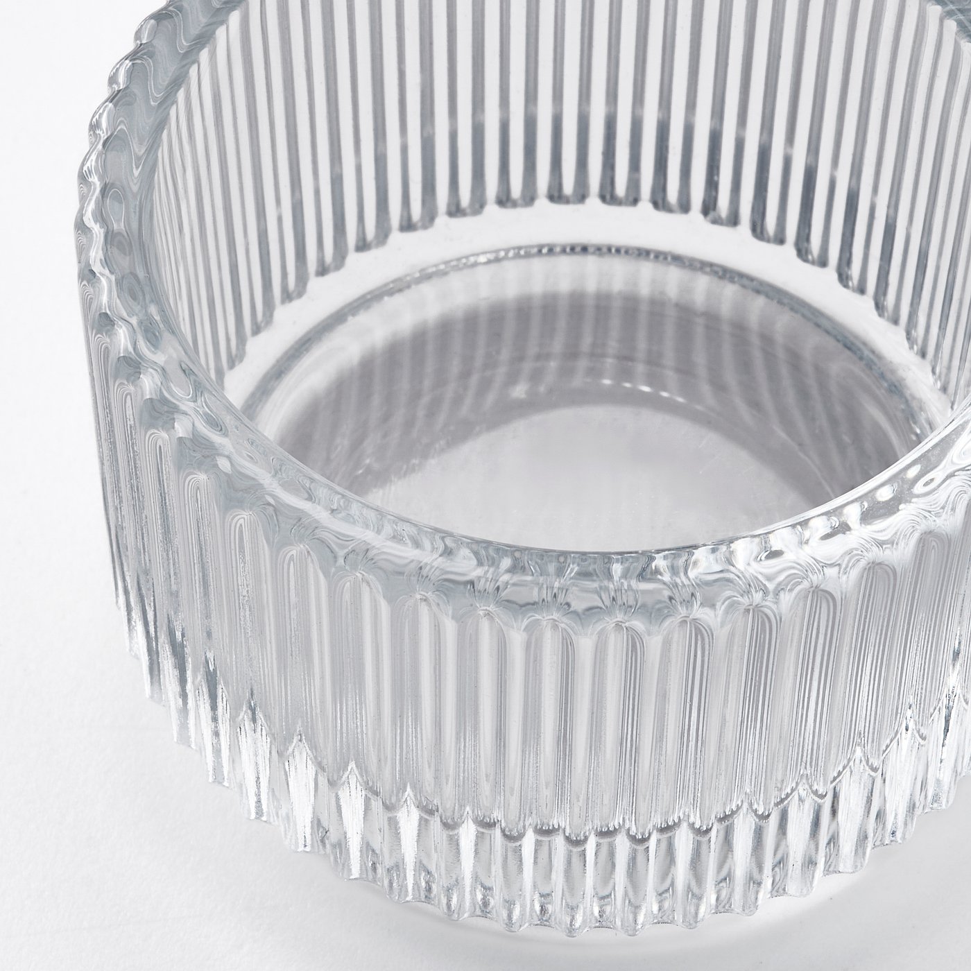 Прозрачное стекло отражает и усиливает теплое сияние пламени свечи.