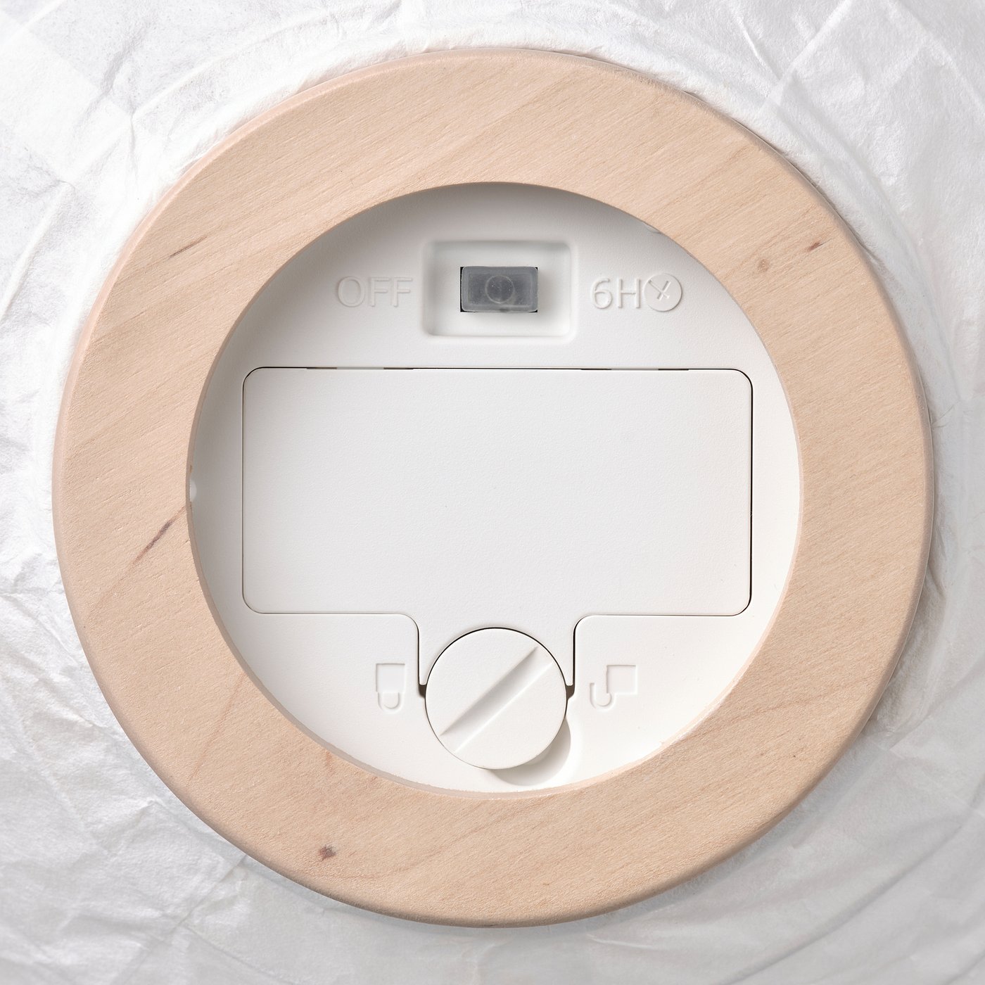 Когда лампочка включена, через рисовую бумагу абажура распространяется мягкий и рассеянный свет.