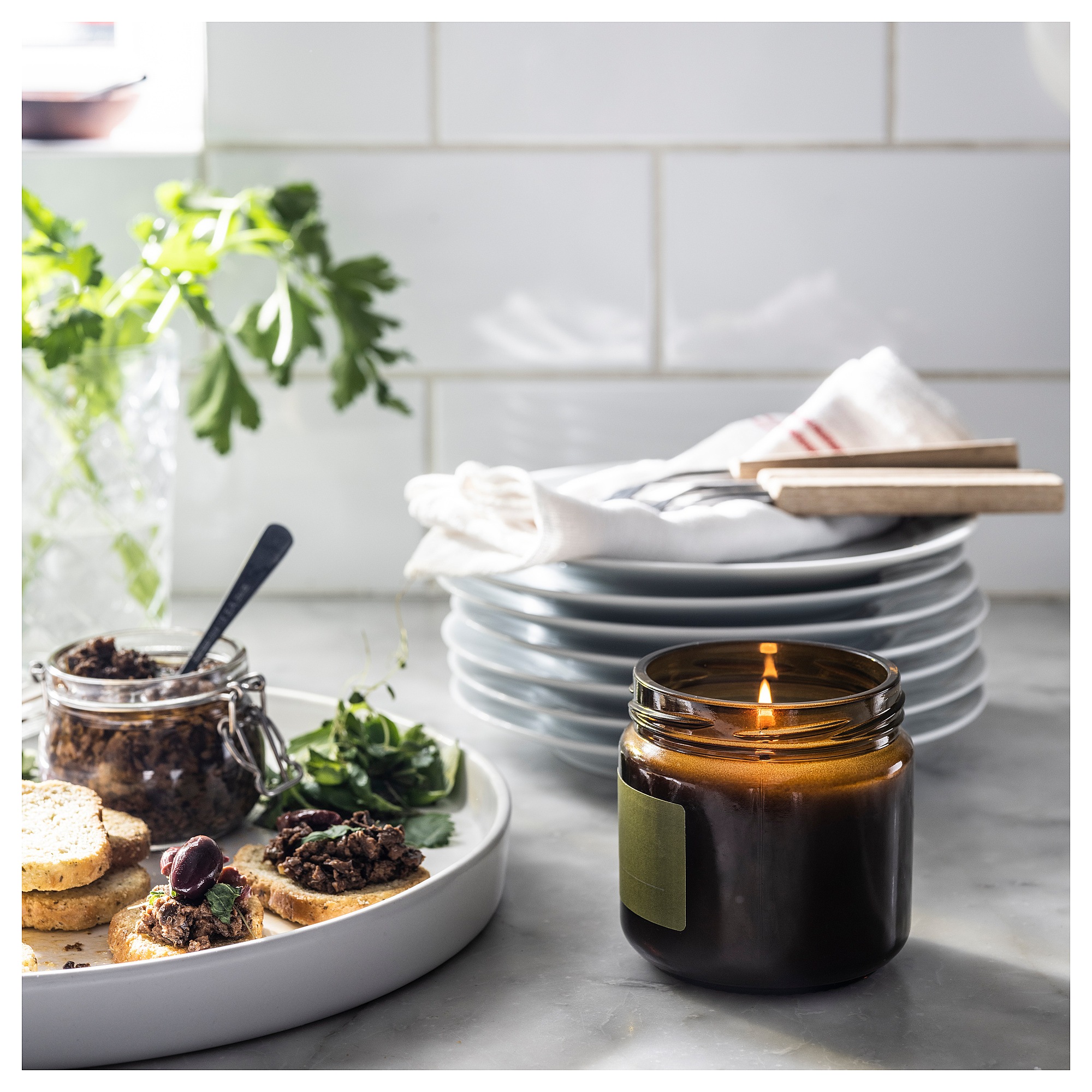 Чем для вас пахнет дом? Ароматическая свеча PRAKTRÖNN подарит вам свежесть свежих трав. Добро пожаловать домой, в яркую и нежную атмосферу нового старта, вдохновленную первыми днями весны.