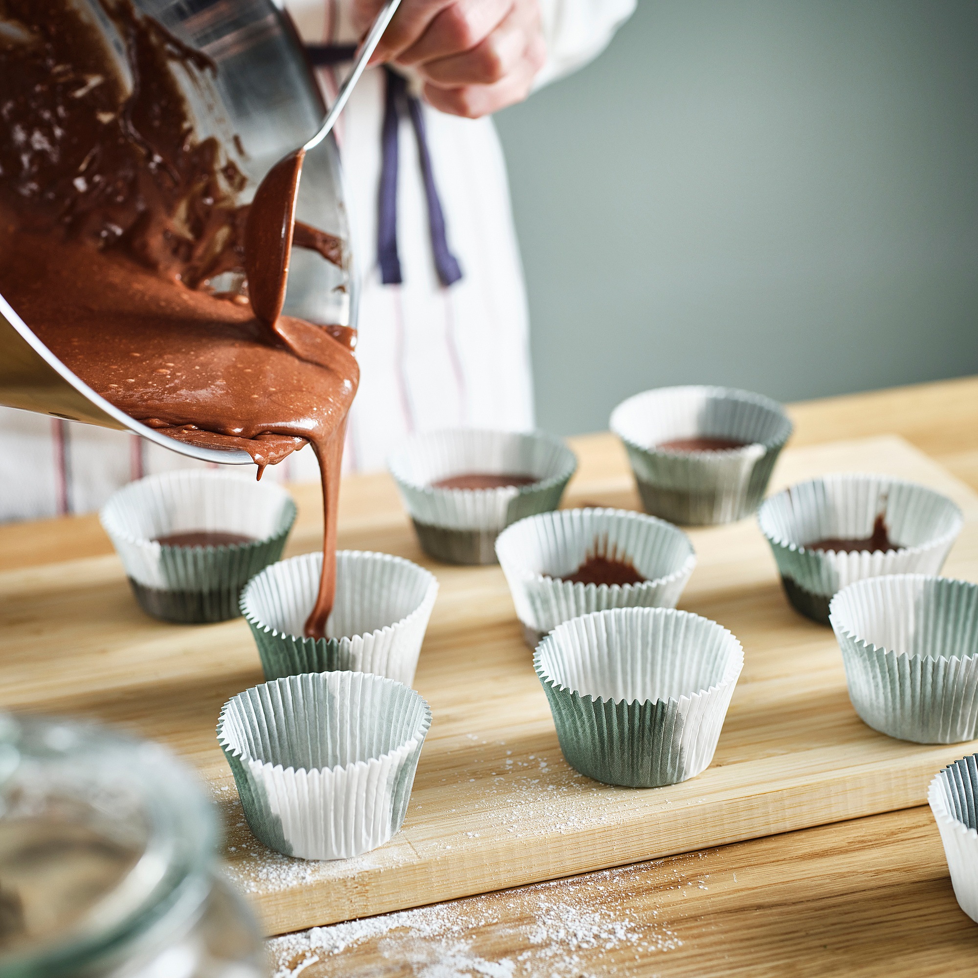 Для достижения наилучшего результата заполните форму для выпечки тестом наполовину.