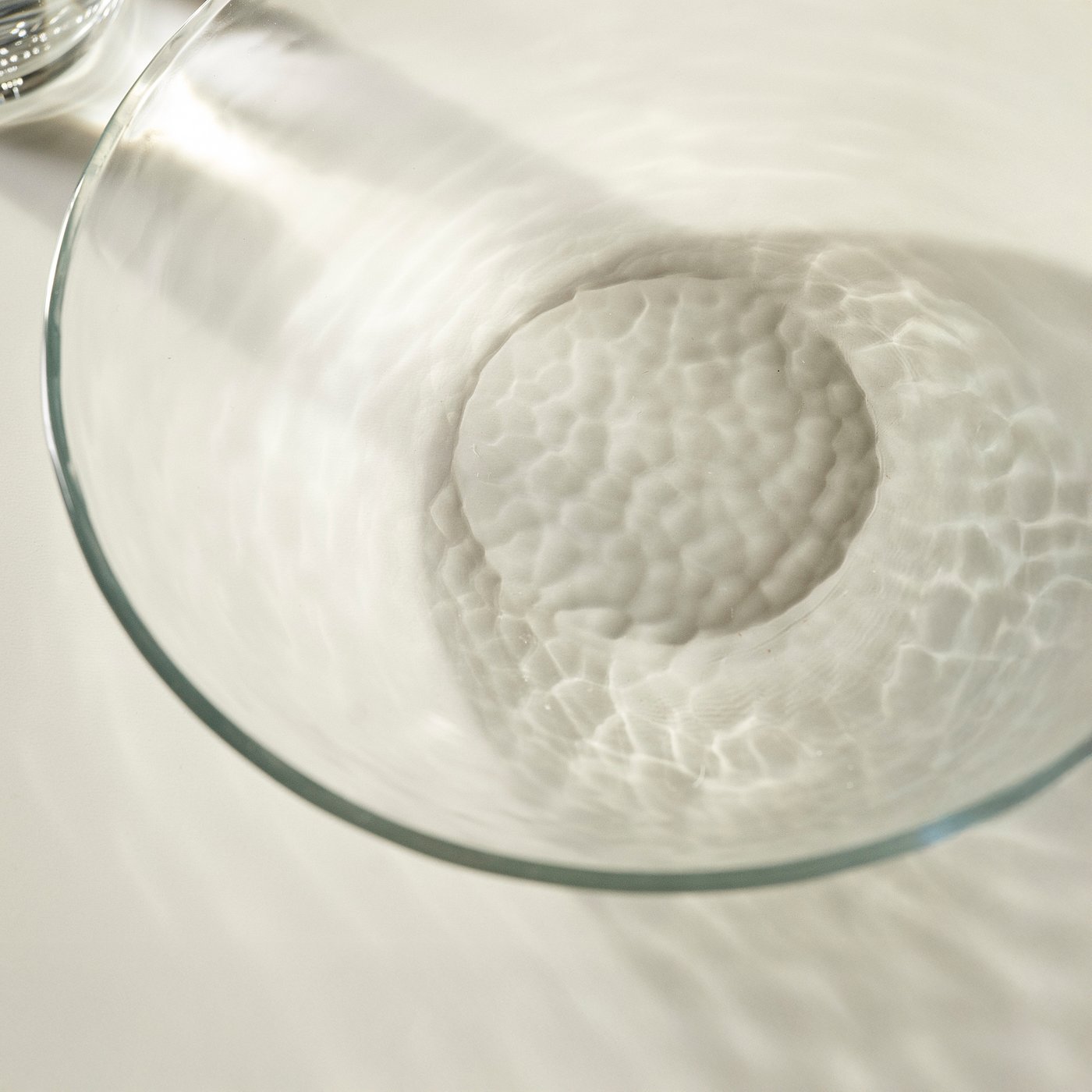 Молотковое стекло напоминает волны на песчаном дне моря. Когда свет проникает сквозь него, он создает красивые тени. В сочетании с мягко закругленной формой чаши он создает уникальную сервировку стола.