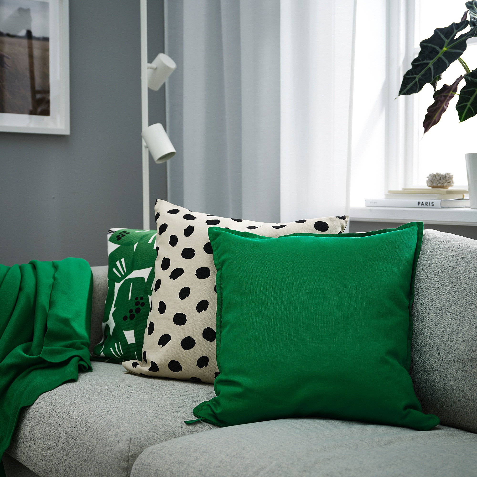 Зеленая наволочка, которую можно легко сочетать с другими однотонными или узорчатыми подушками. Также доступна в других цветах и 2 размерах. Выберите ту, которая больше всего вам подходит. Продукт изготовлен на 50% из переработанного хлопка.