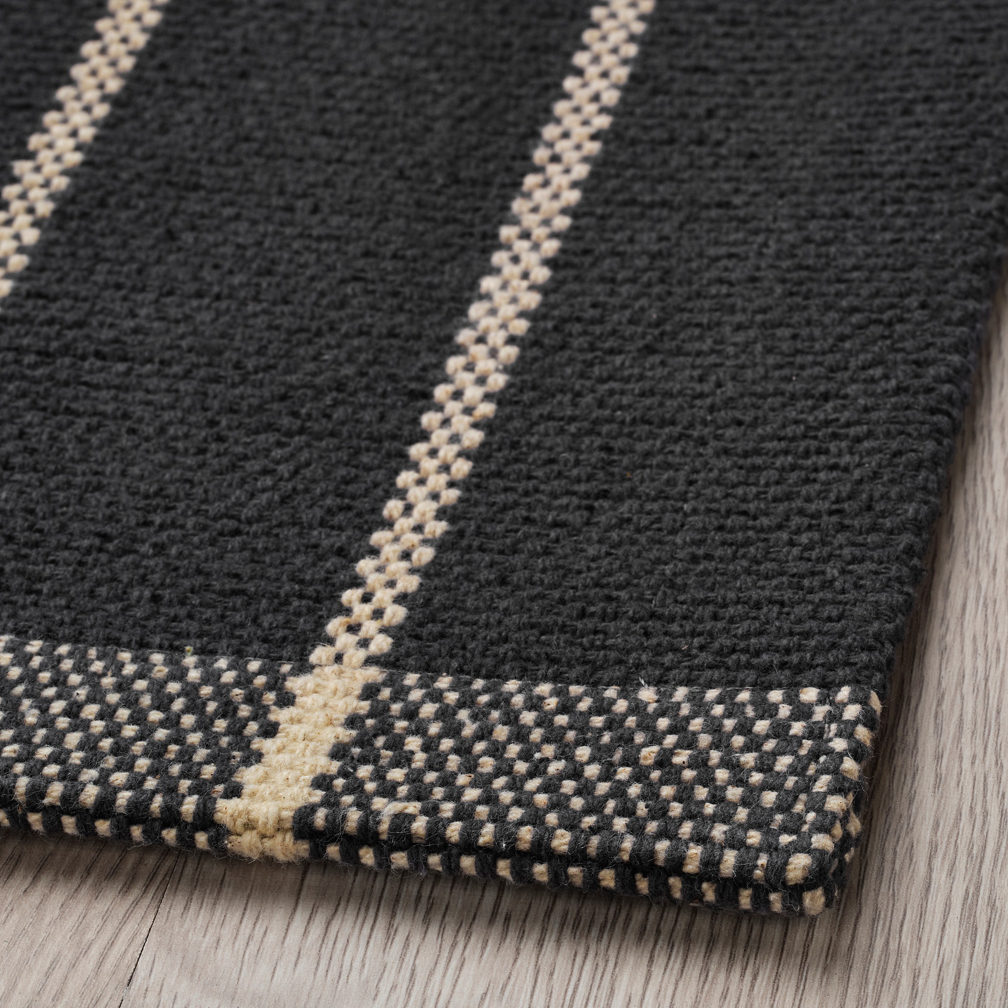 Приятный для ног хлопок серого цвета с кремовыми полосками. Плоский коврик идеально подойдет для прихожей или кухни. Долго сохраняет свежесть, легко чистится пылесосом и можно стирать в стиральной машине.
