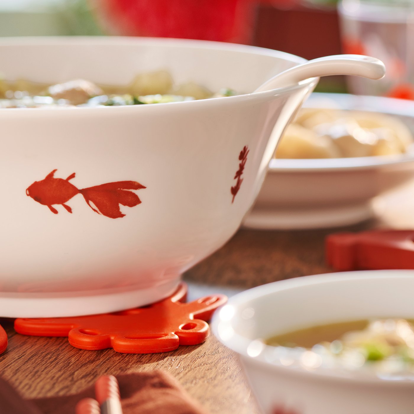 Этот интересный декоративный мотив вдохновлен традиционным китайским искусством, в котором золотая рыбка символизирует богатство и процветание. Идеальный элемент праздничного стола.