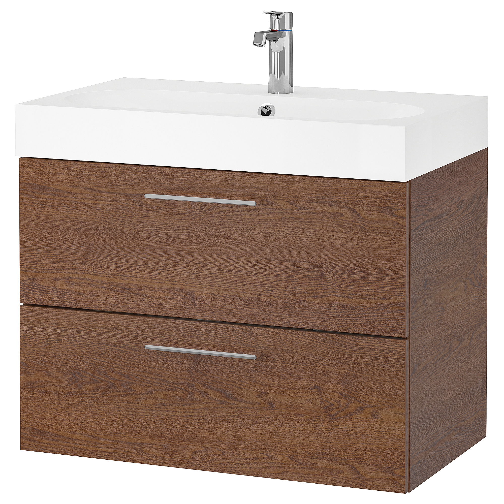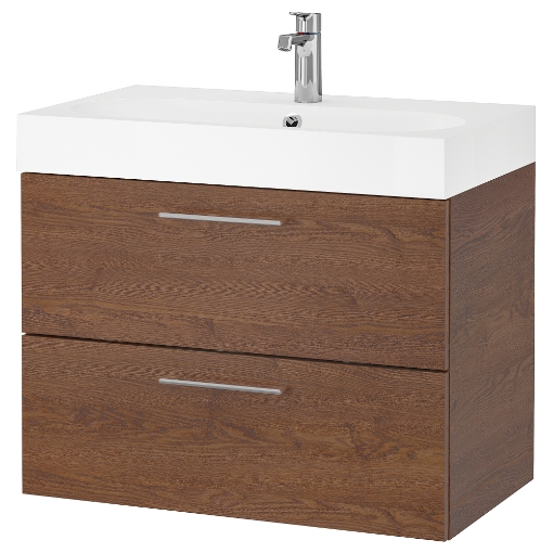 Смелый внешний вид с отделкой из темного дерева и видимым рисунком зерна. Это решение удовлетворит ваши основные потребности - от вместительных ящиков до водосберегающего смесителя. Оно легко сочетается с различными цветами и стилями.