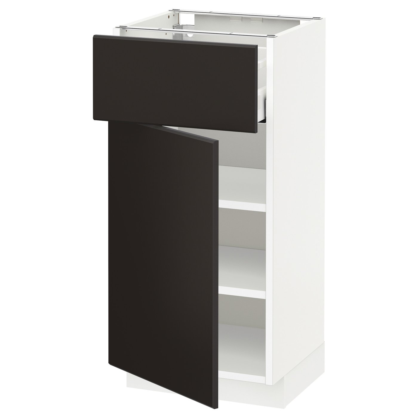 Упаковки: 6Общий вес упаковки: 21.96 кг ИКЕА МЕТОДКаркас напольного шкафа, белый, 40x37x80 смАртикульный номер: 30205632Ширина: 45 смВысота: 6 смДлина: 82 смВес: 10.3 кгИКЕА УТРУСТАПолка, белый, 40x37 смАртикульный номер: 40205622Ширина: 36 смВысота: 4 смДлина: 37 смВес: 3.2 кгИКЕА МАКСИМЕРАЯщик, иметь в виду, белый, 40x37 смАртикульный номер: 60204626Ширина: 30 смВысота: 8 смДлина: 38 смВес: 4 кгИКЕА КУНГСБАККАФронтальная панель ящика, антрацит, 40x20 смАртикульный номер: 60337344Ширина: 20 смВысота: 2 смДлина: 49 смВес: 1.1 кгИКЕА КУНГСБАККАДверь, антрацит, 40x60 смАртикульный номер: 70337334Ширина: 40 смВысота: 2 смДлина: 69 смВес: 3.1 кгИКЕА УТРУСТАПетля со встроенным стопором, 110 °Артикульный номер: 80524882Ширина: 20 смВысота: 3 смДлина: 22 смВес: 0.2 кг