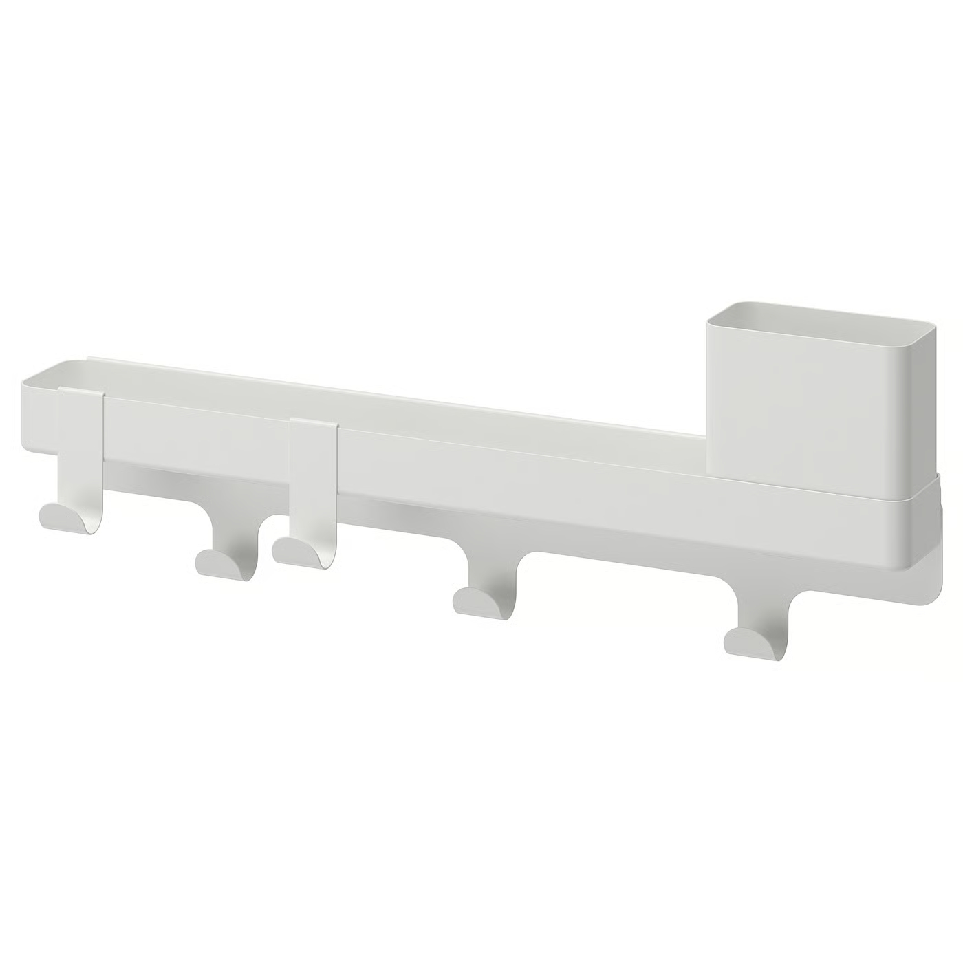 На крючках можно что-нибудь повесить, на полке выставить на обозрение любимые сокровища, а в контейнер сложить мелочи — и всё это в одном месте!