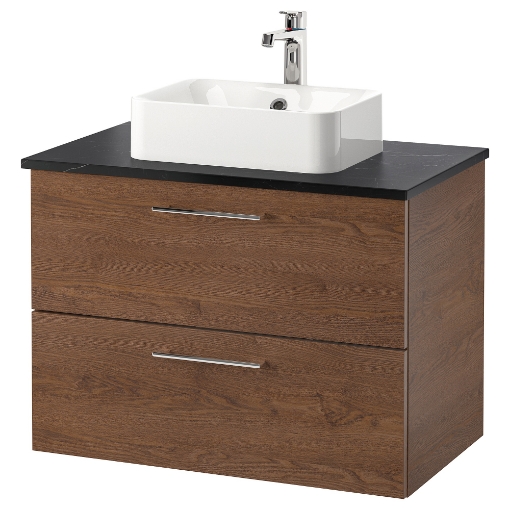 В глубоком нижнем ящике удобно хранить полотенца и фен, а в верхнем ящике достаточно места для бутылочек с шампунем и гелем для душа и разных мелочей.