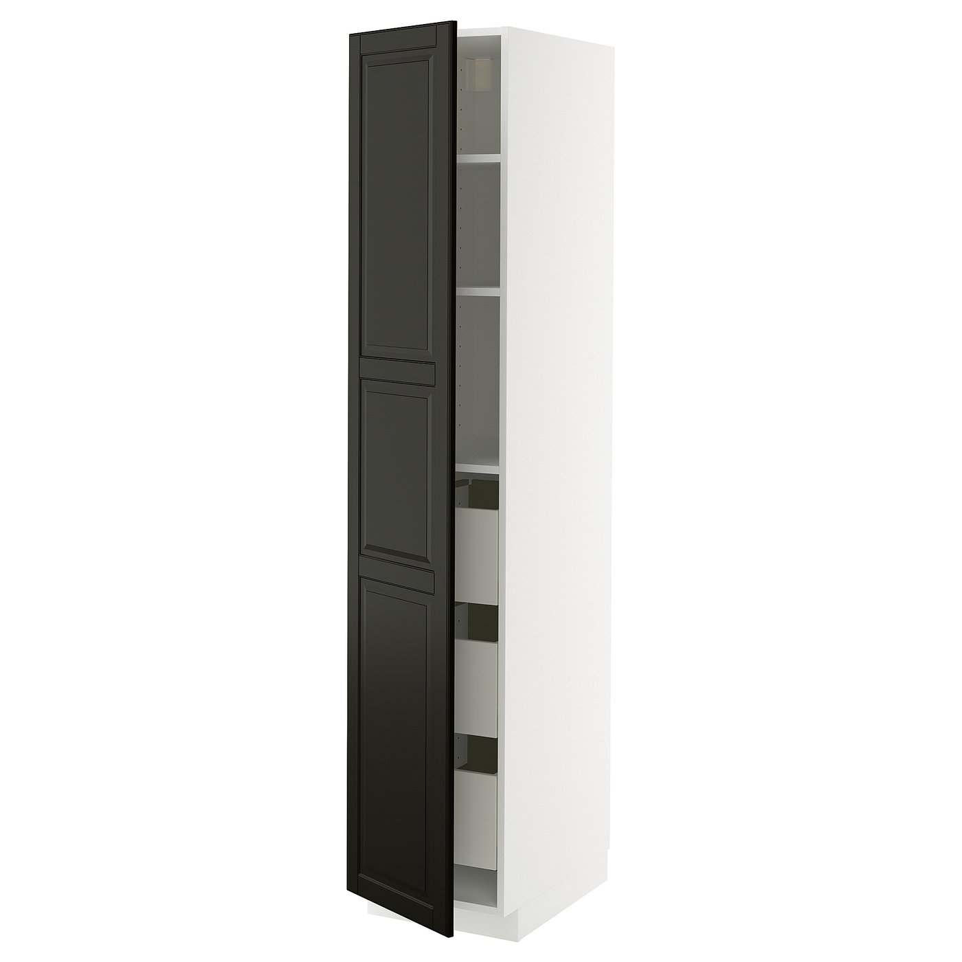 Система METOD предоставляет неограниченные возможности для проектирования кухни вашей мечты. В сочетании с черными фасадами BODBYN со скошенными краями она поражает теплой эстетикой и изысканностью.