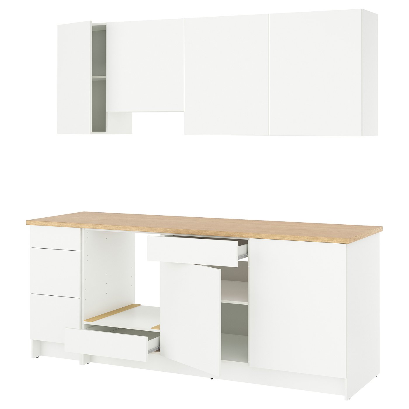 Два ящика и регулируемые полки позволят вам упорядочить пространство внутри шкафов и адаптировать его к хранящимся вещам.