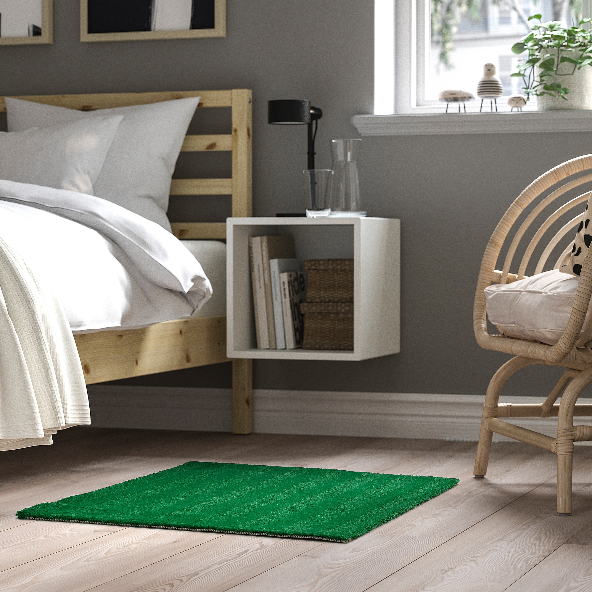 Зеленый ковер с коротким ворсом, который отличается приятной мягкостью и легкостью в уборке. Сочетание прямой и крученой пряжи создает нестареющий полосатый узор. Положите его рядом с кроватью, и ваши ноги обязательно скажут вам спасибо.