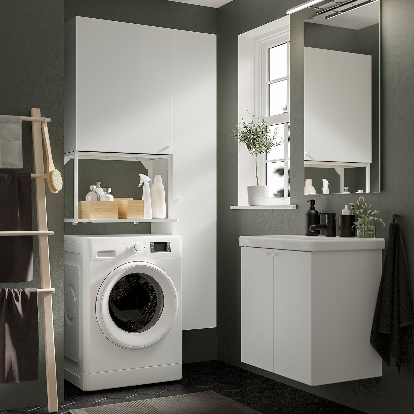 Установите его над тележкой для белья ENHET, чтобы создать функциональное решение для прачечной.