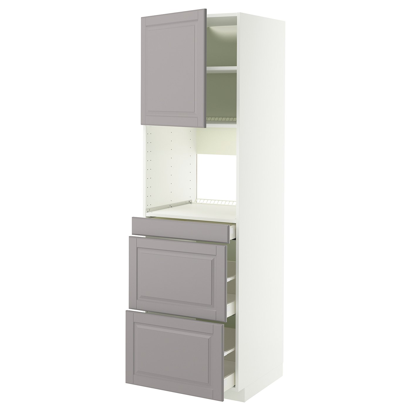 Система METOD предоставляет неограниченные возможности для проектирования кухни вашей мечты. В сочетании с фасадами BODBYN нежно-серого цвета с фасками вы создадите традиционный облик, создающий теплое и уютное впечатление.