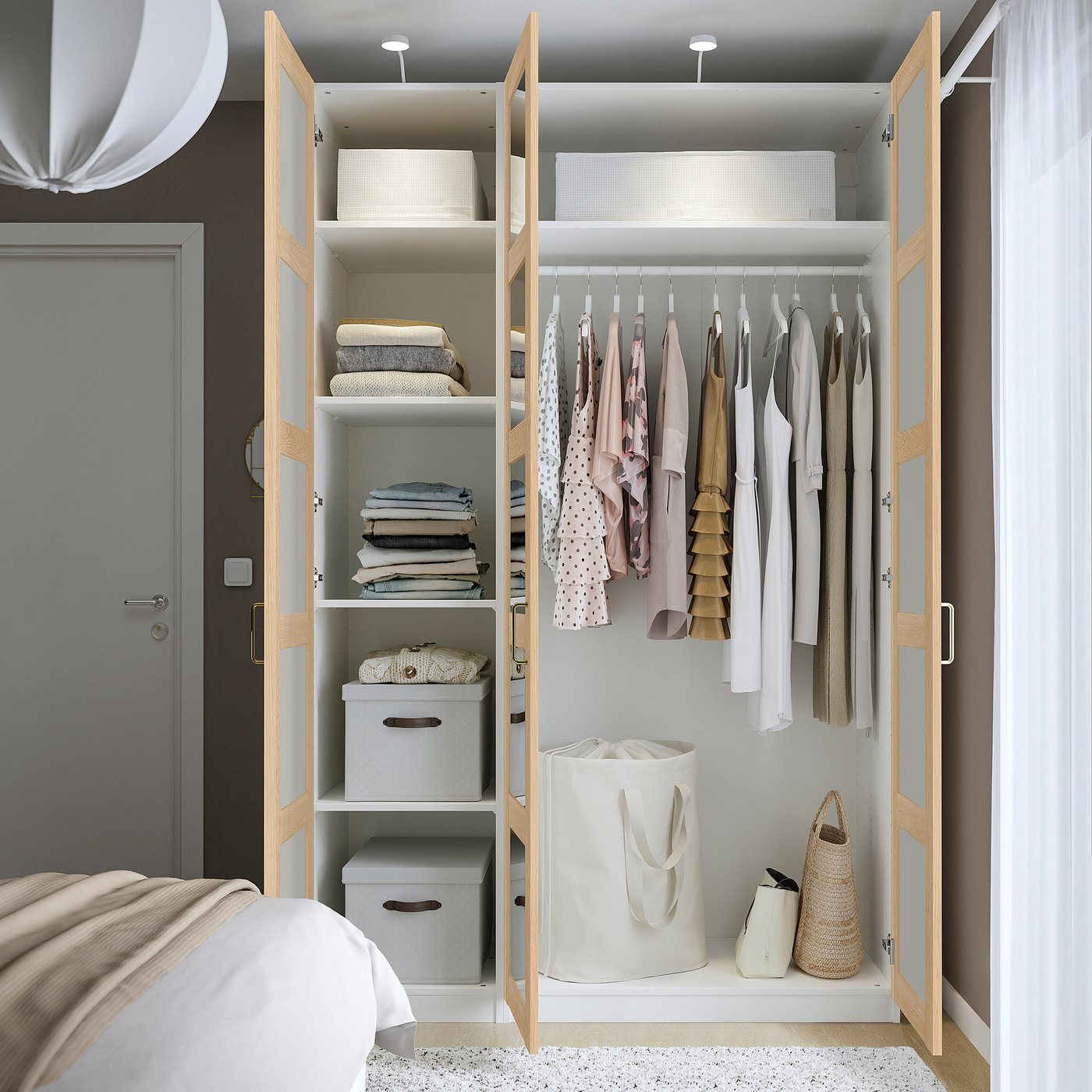 Внутренние аксессуары, которые помогут организовать внутреннее пространство шкафа, продаются отдельно.