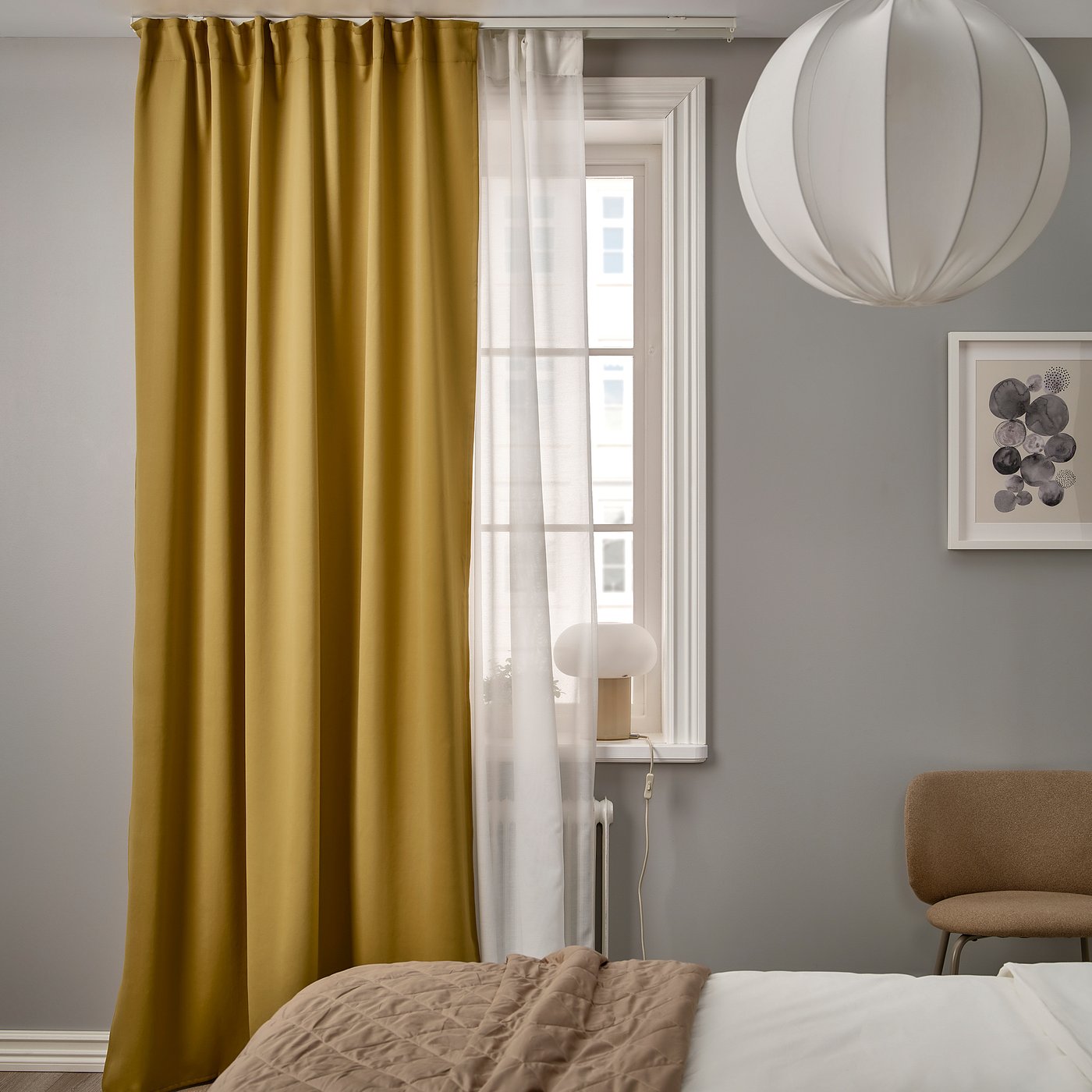 Двухслойное решение в окне обеспечивает большую гибкость в отношении количества света, проникающего в помещение, а также уровень конфиденциальности. Придает объем шторам и создает элегантный эффект.
