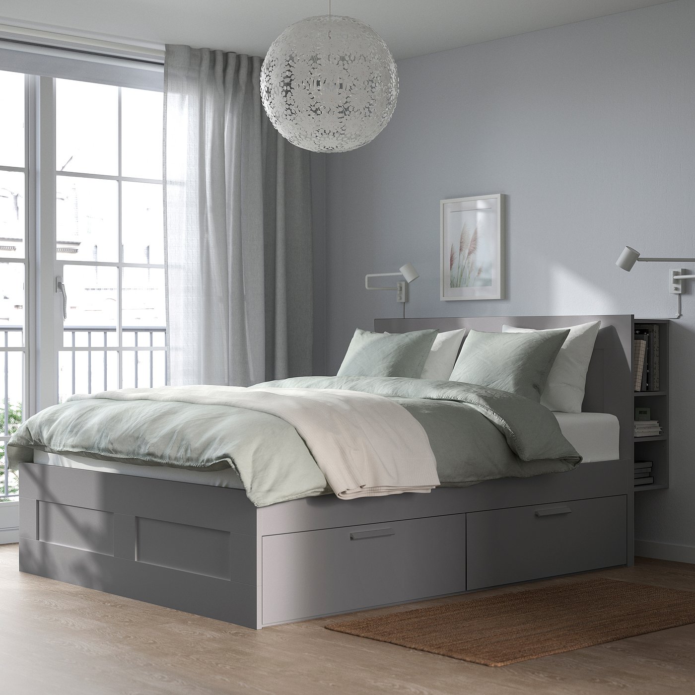 Рама кровати со скрытыми ящиками в различных местах — идеальное решение для небольших помещений. Серия BRIMNES предлагает множество практичных решений, которые помогут сэкономить место.