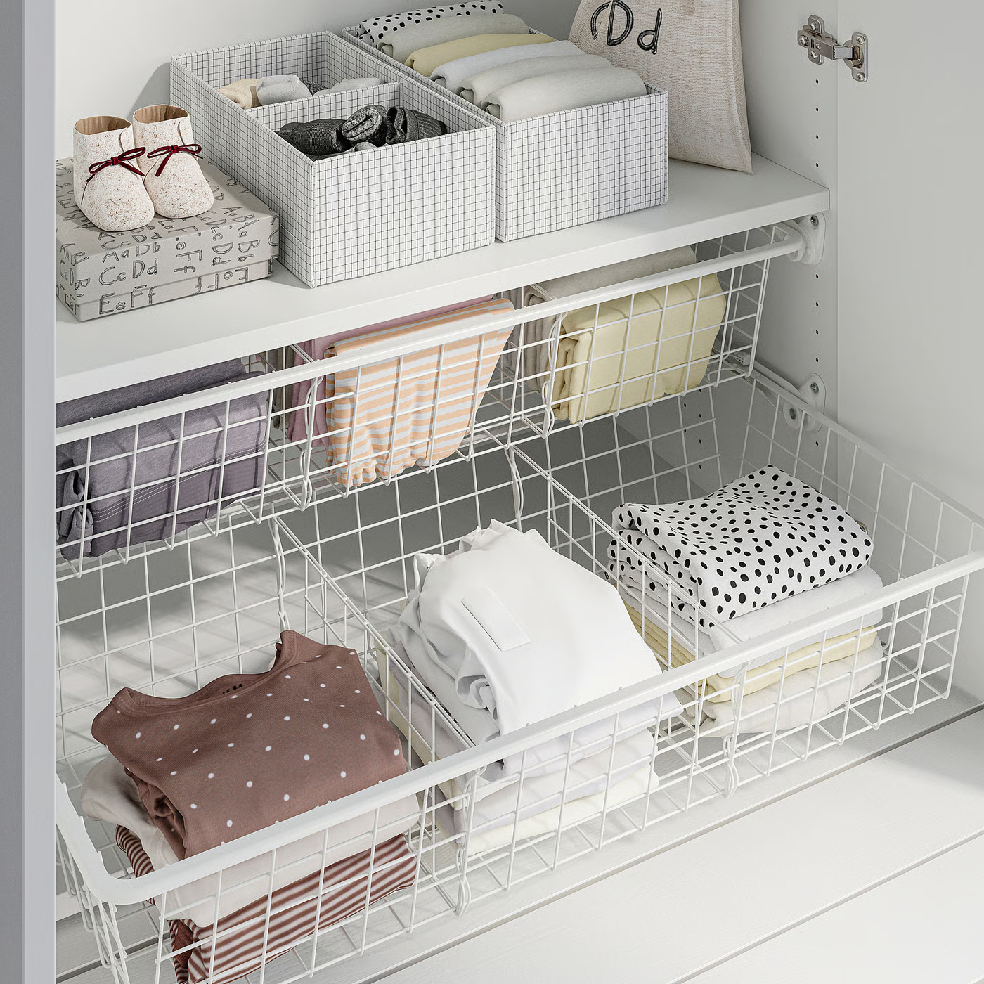 В корзину помещается около 4 пар сложенных брюк или 8 футболок.