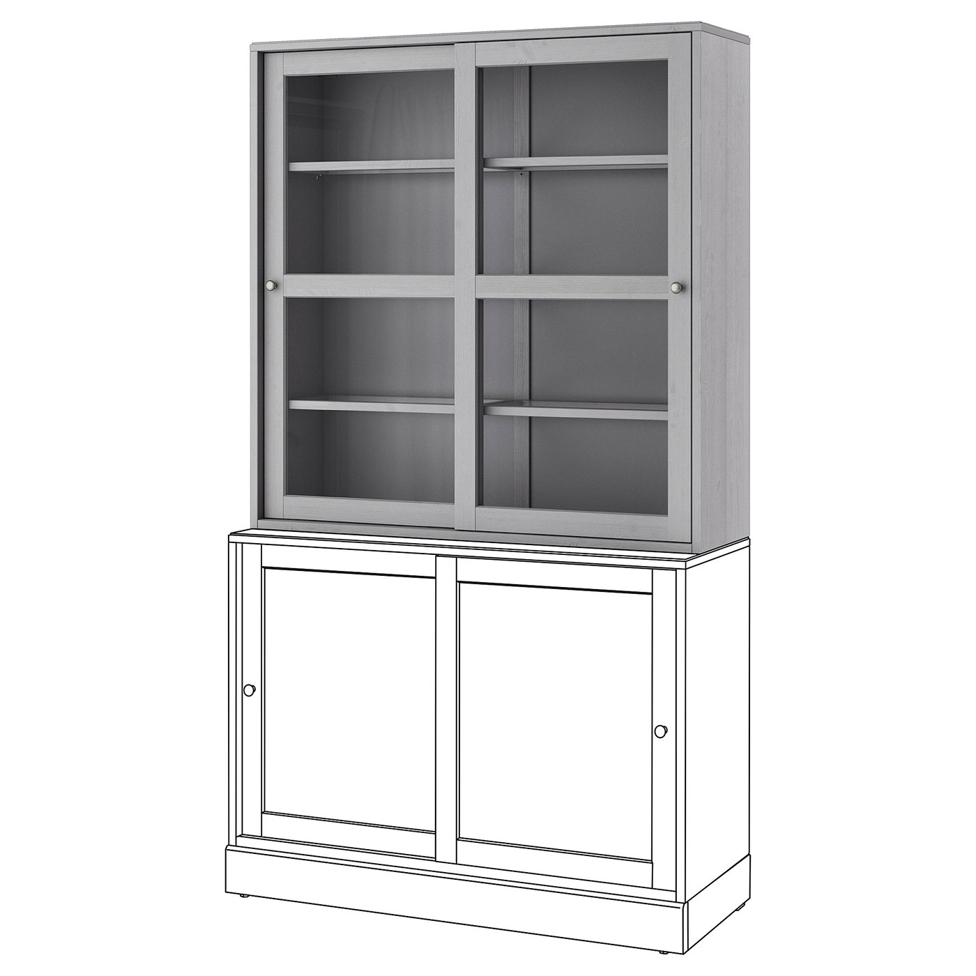 Этот штабелируемый блок можно установить на шкаф HAVSTA глубиной 47 см с раздвижными дверцами для создания вертикальной комбинации или превратить в отдельно стоящий блок, добавив цоколь HAVSTA соответствующего размера.
