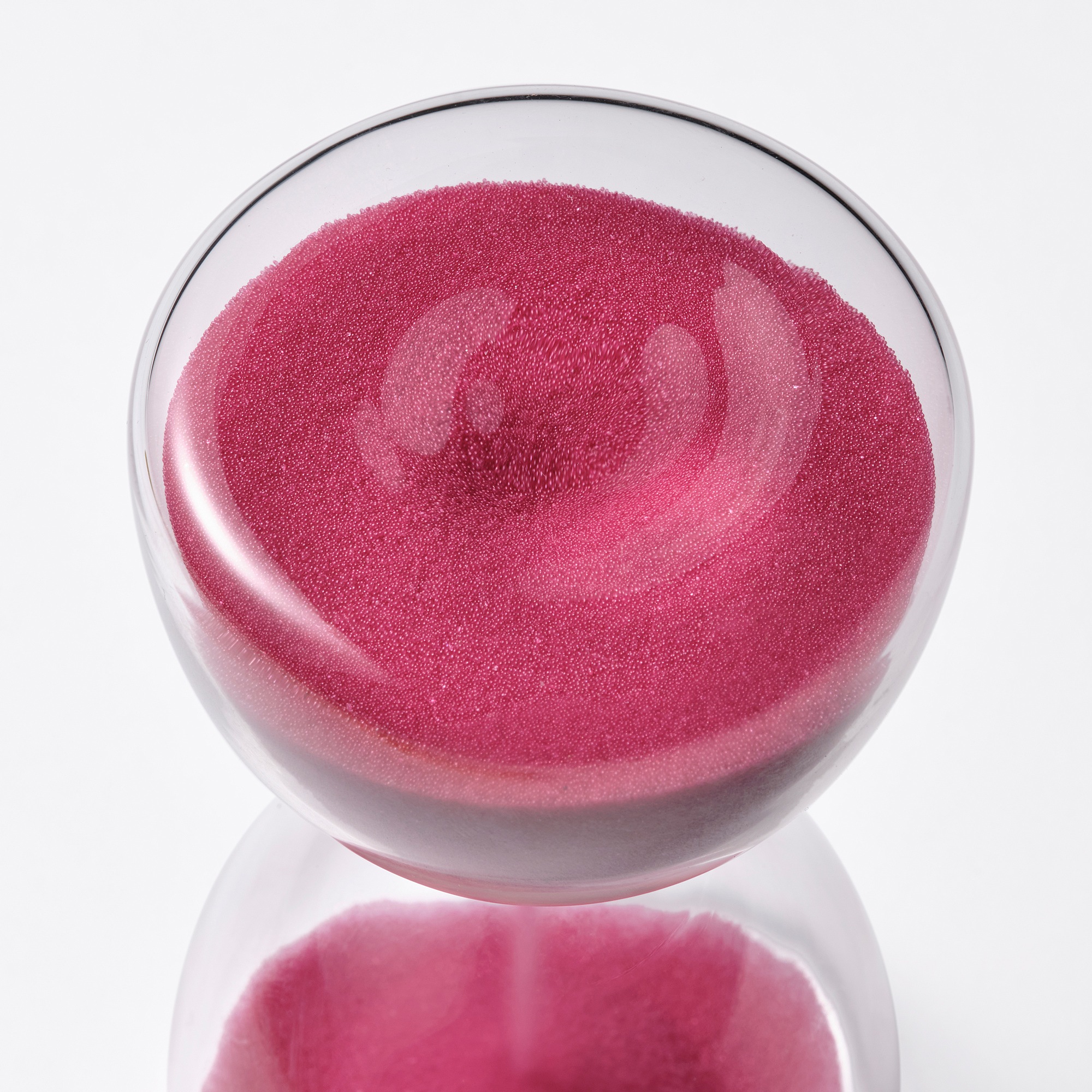 Декоративный вариант для современного хронометража. Через прозрачное стекло можно увидеть, как розовый песок медленно движется вниз, а повернув песочные часы, можно услышать, как первые песчинки падают на дно.