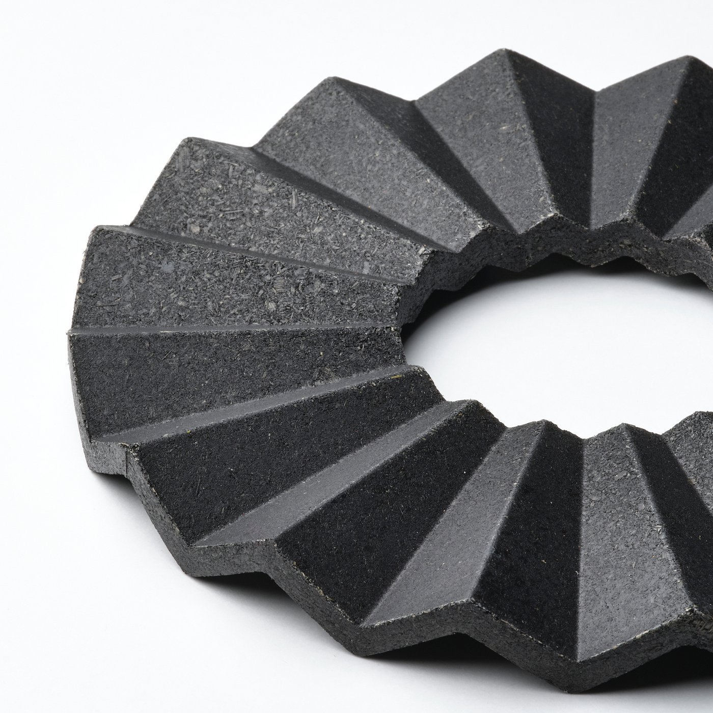 Продукт изготовлен из отходов, полученных в ходе других наших производственных процессов, и покрыт лаком для подчеркивания крапчатой поверхности.