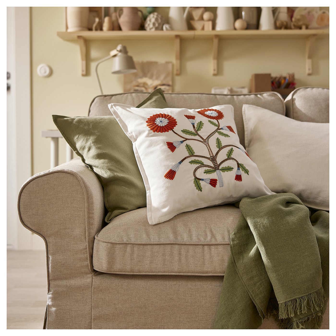 Хлопковая наволочка с вышивкой FACELIOR, разработанная Евой Лундгрин, вдохновлена традиционным шведским ремеслом. Очаровательный цветочный мотив привнесет в ваш дом фольклорный акцент.